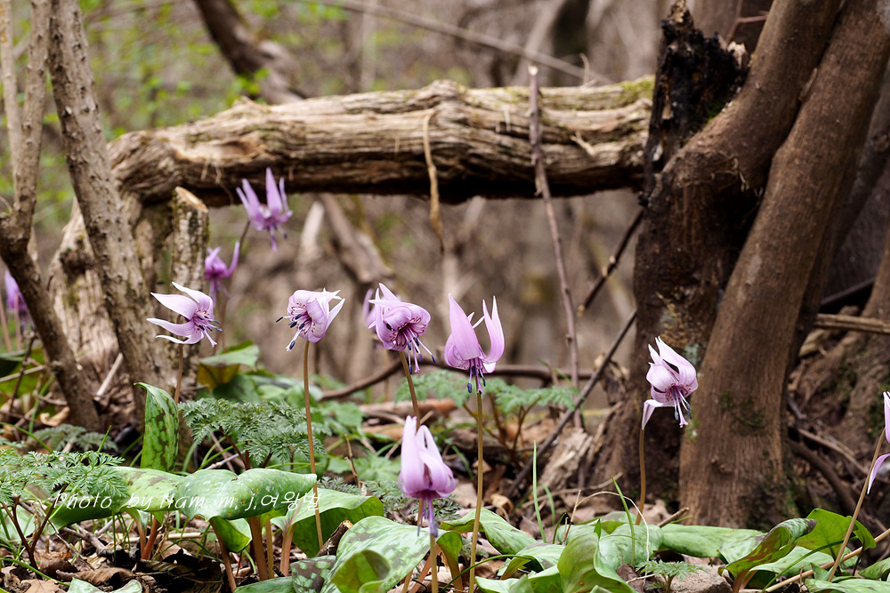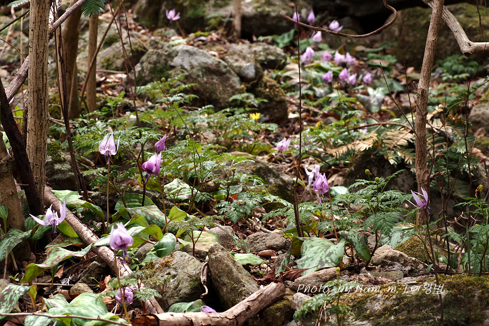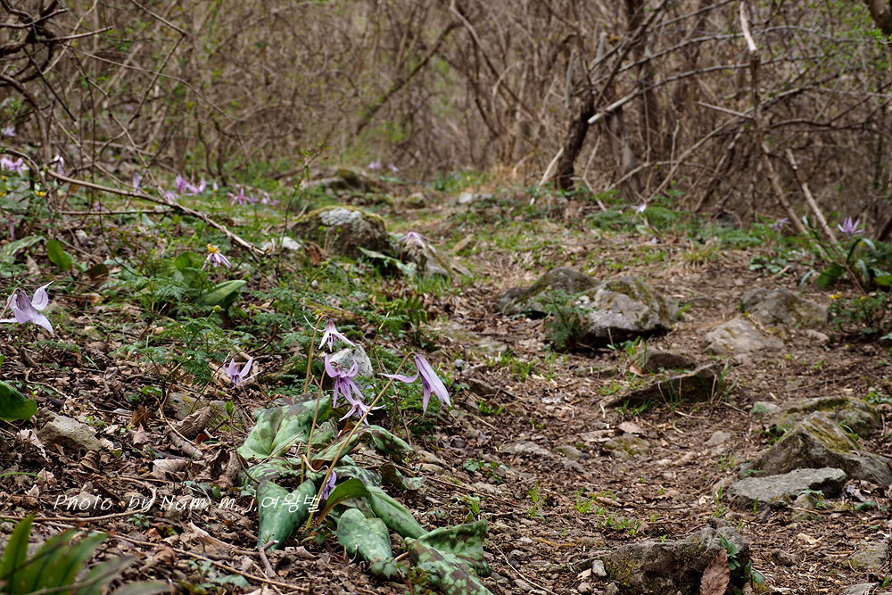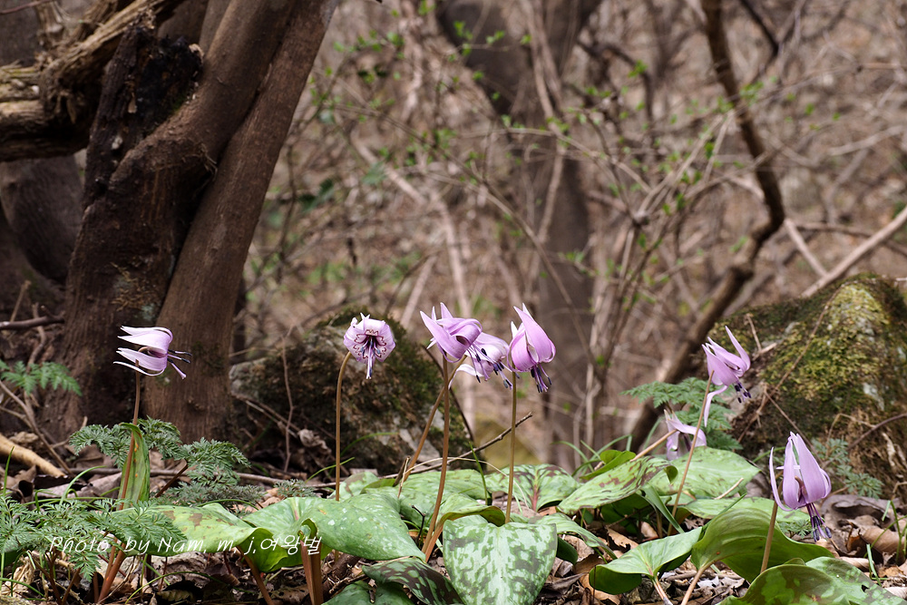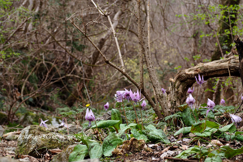 계곡 숲 아래 큰 얼레지 군락에 눈이 휘둥그레졌다.