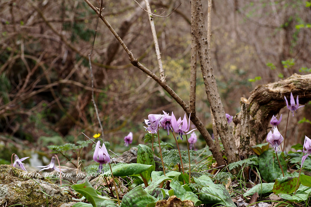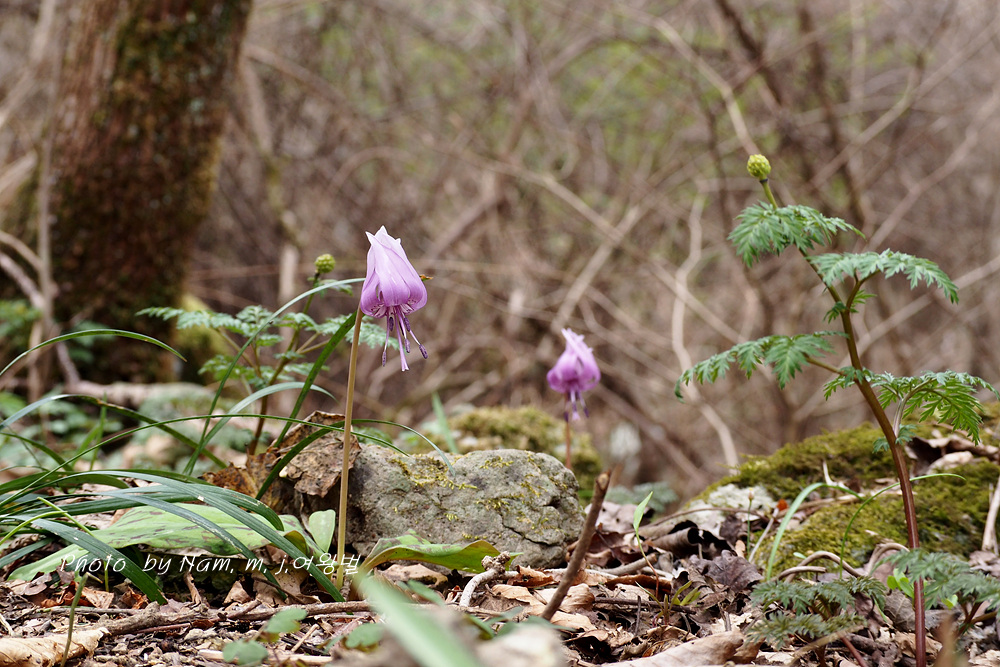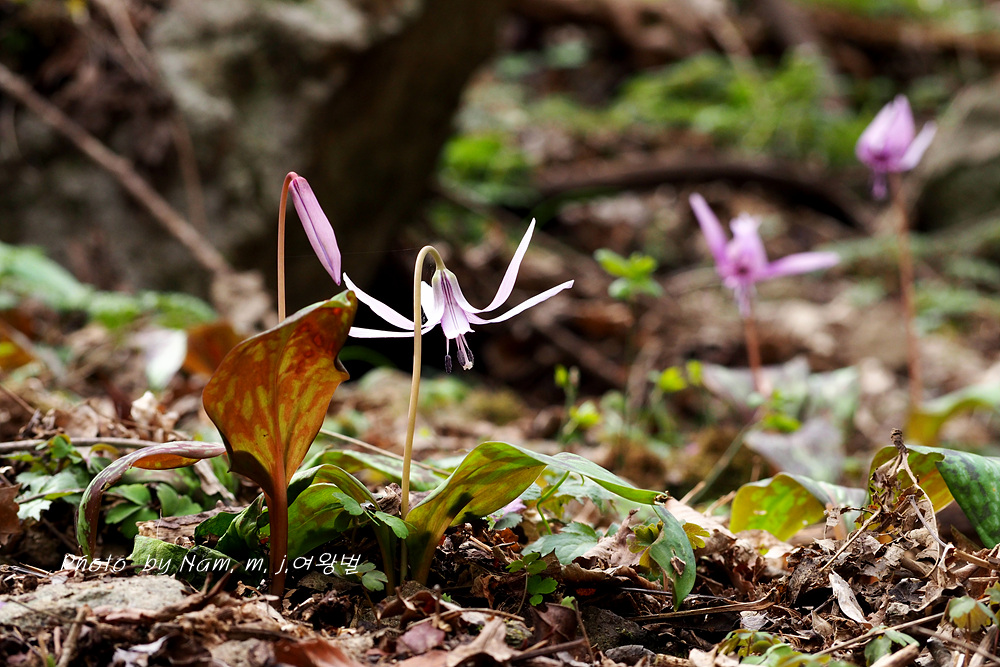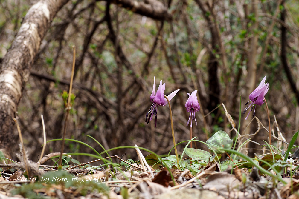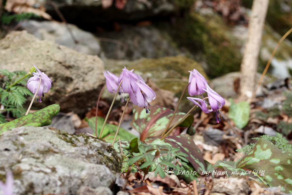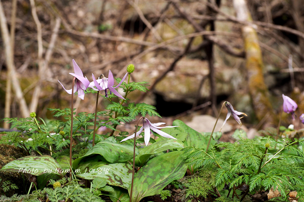 계곡 숲 아래 큰 얼레지 군락에 눈이 휘둥그레졌다.