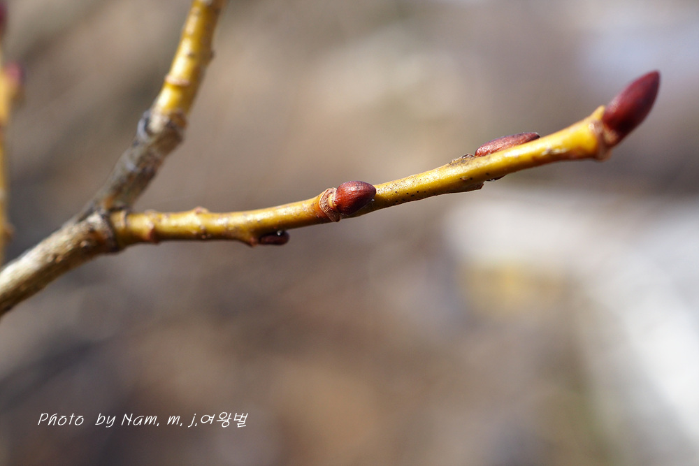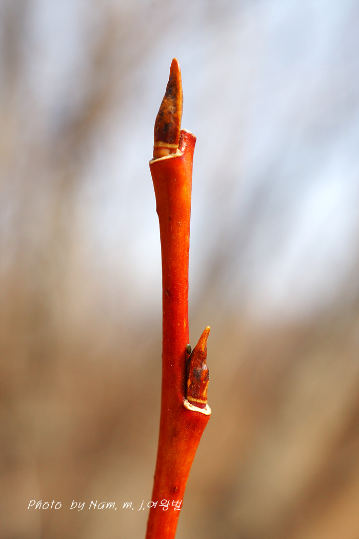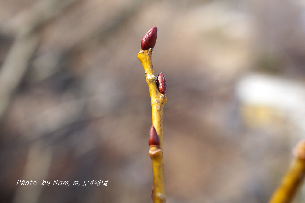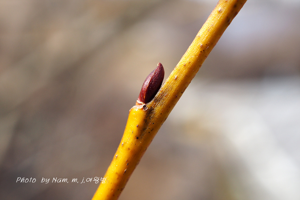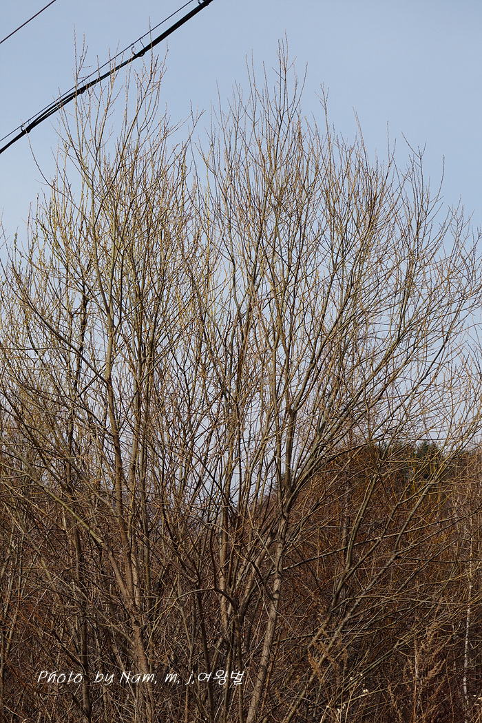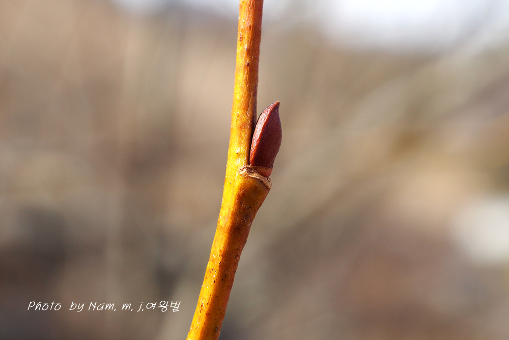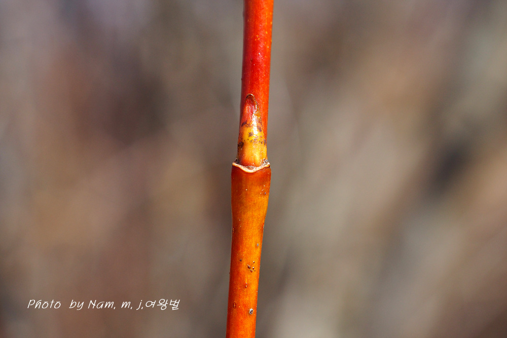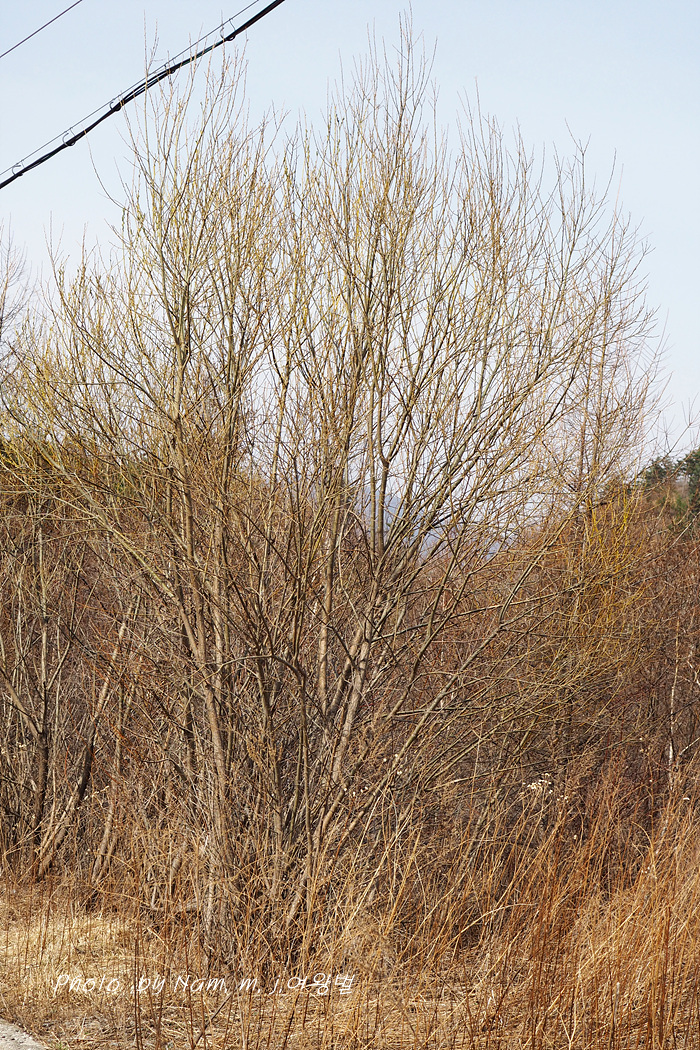 어린 가지가 노란 색이 강하고 약간 붉은 기운도 있다.