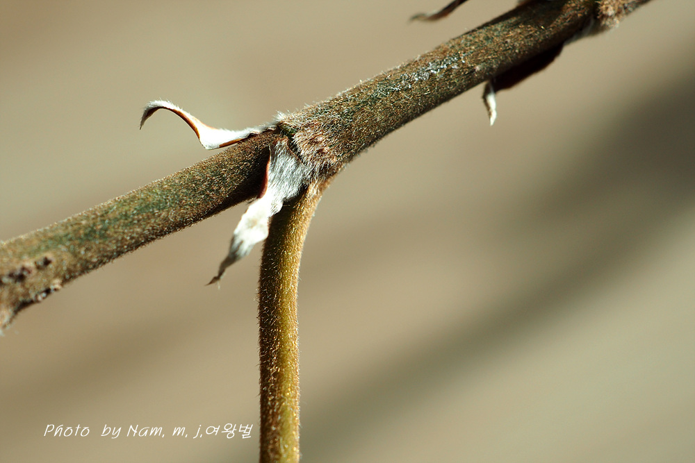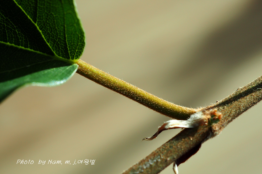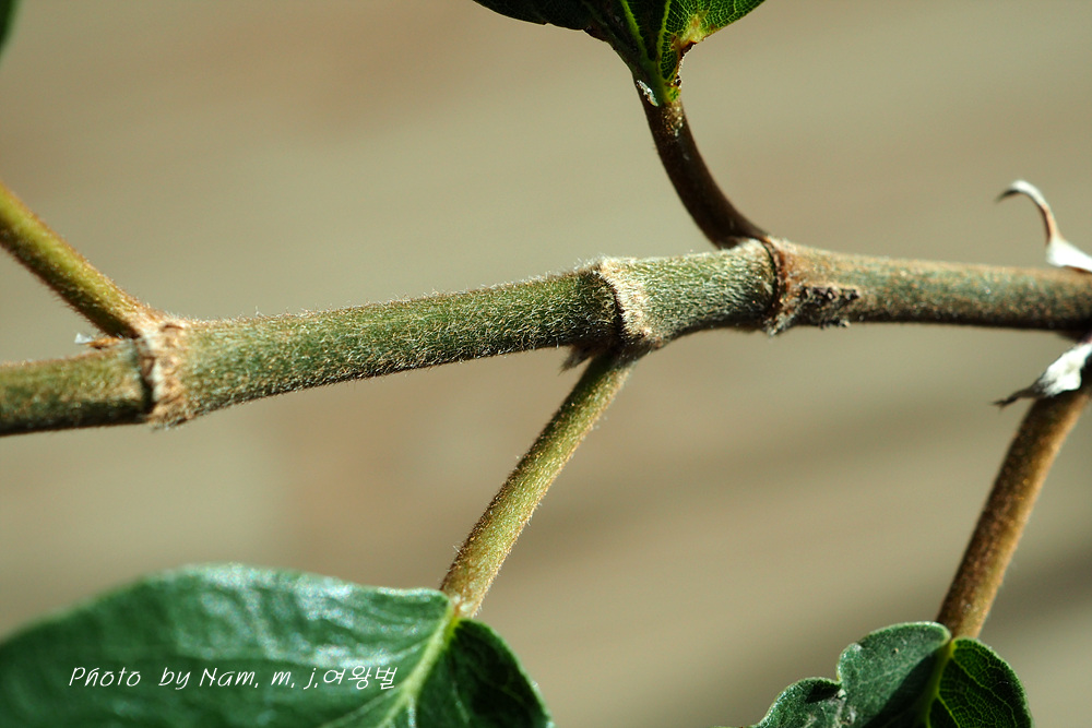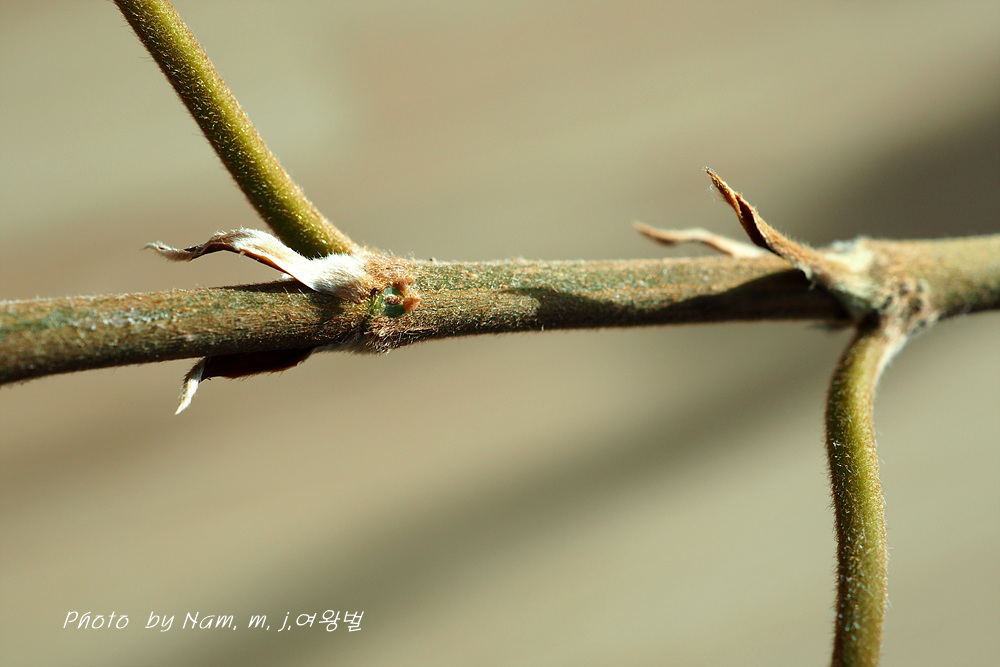 가지에는 털이 있고 잎자루 아래 피침형의 탁엽이 보인다.