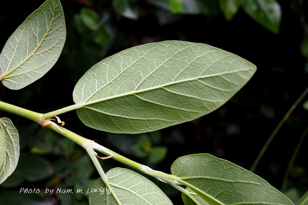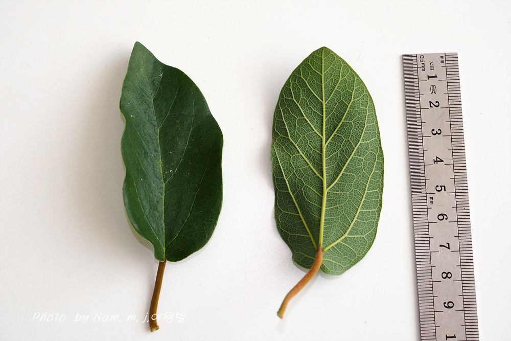 타원상 피침형 잎끝이 길다. 엽맥 5-8쌍 |