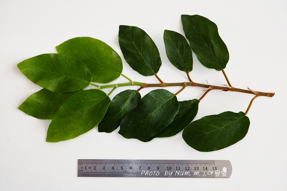 난형, 타원형, 잎맥이 들어감. 엽맥1-5쌍 |