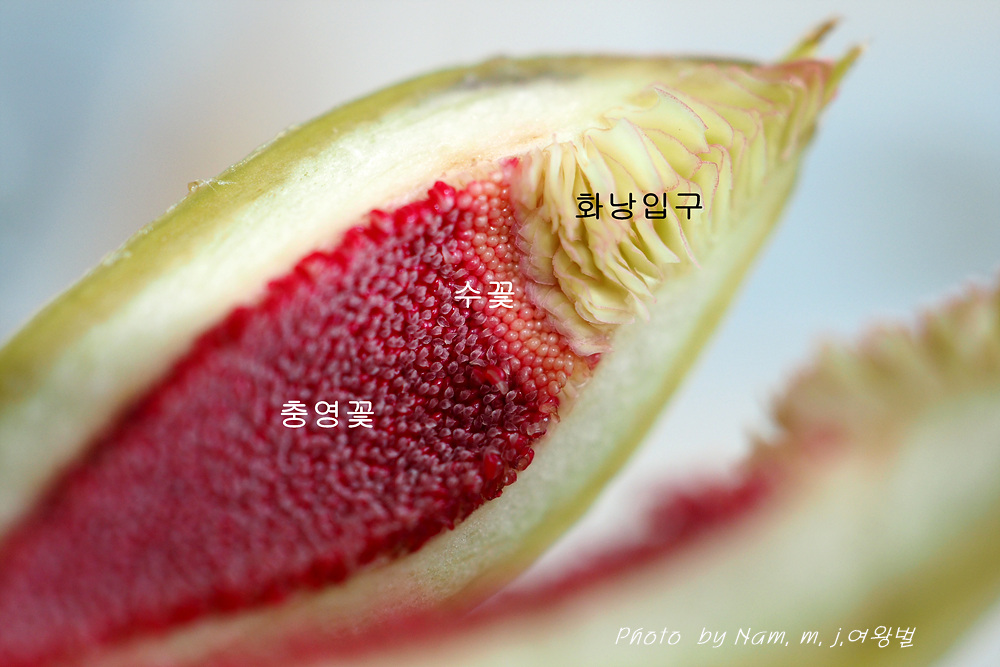 화낭 속의 꽃을 보호하기 위한 전략일 수는 있겠지만 수분을 좀 더 쉽게 하는 게 열매를 만드는데 도움이 될 텐데.....