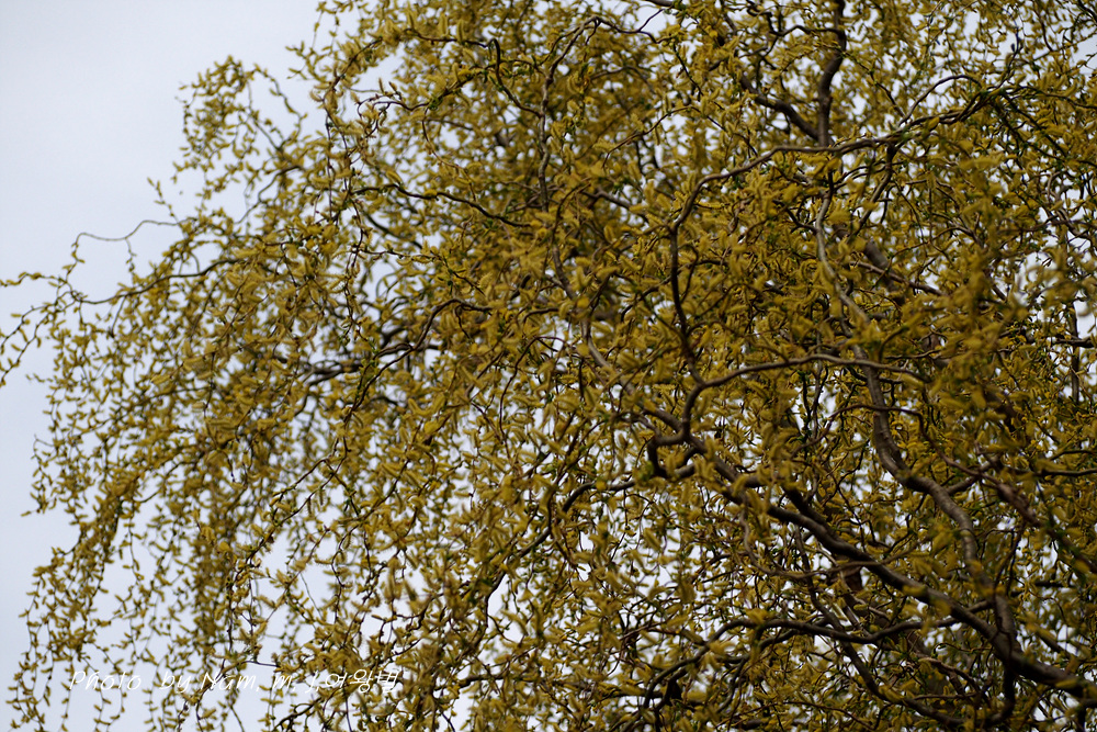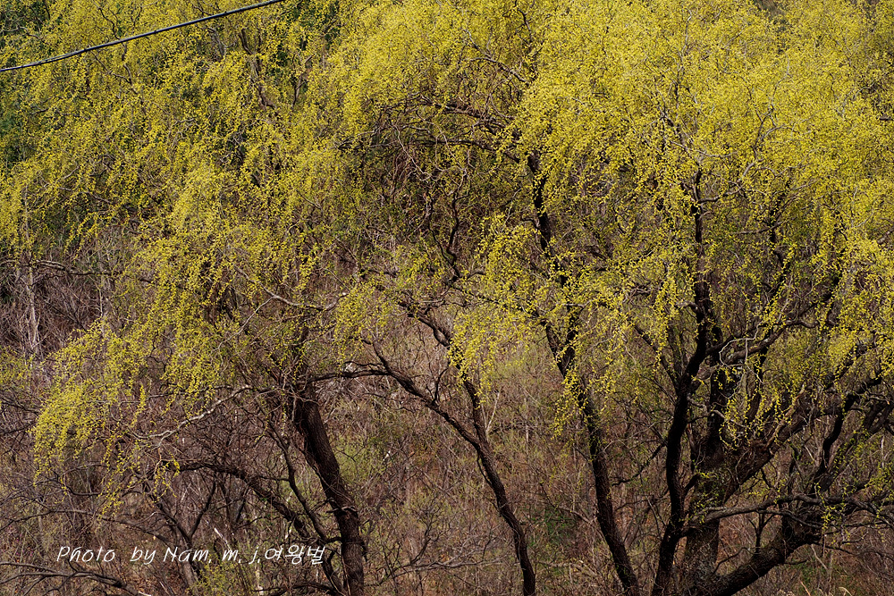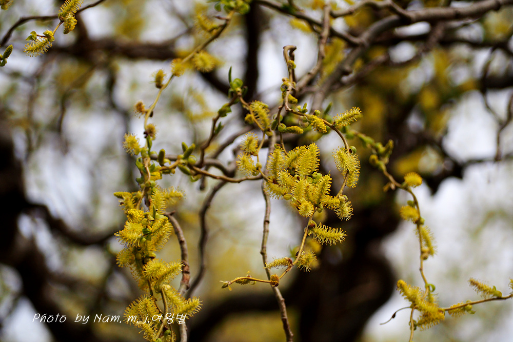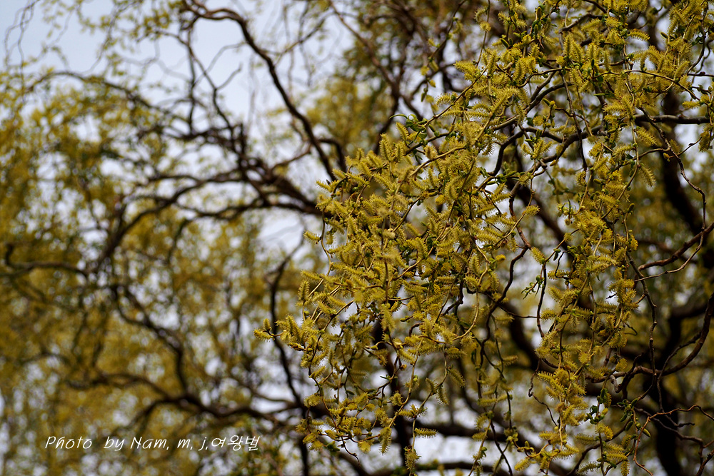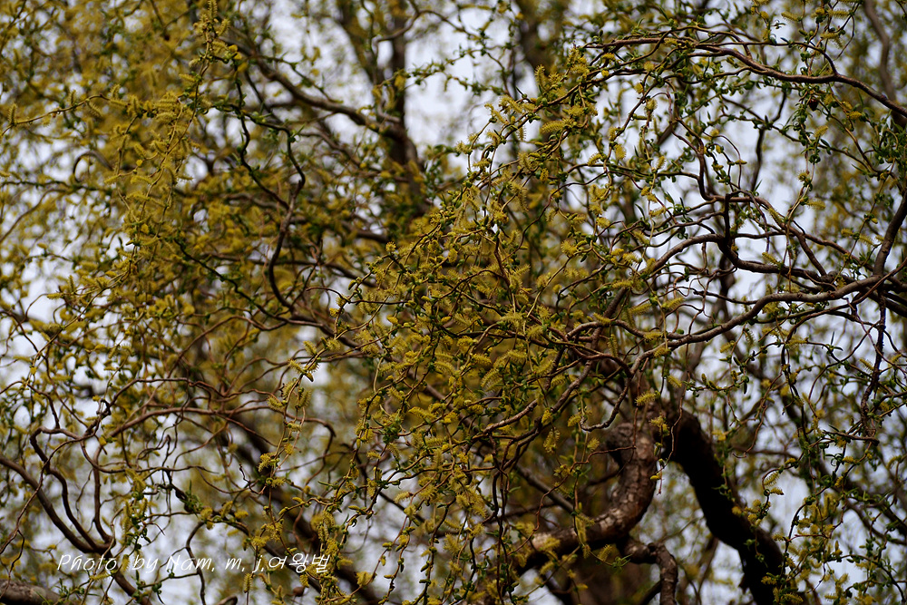 구불거리는 가지를 치렁치렁 늘어뜨리고 온통 노랗게 꽃을 피운 용버들이 눈에 들어온다.
