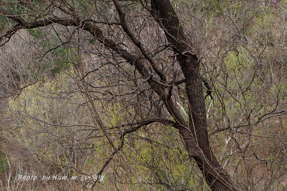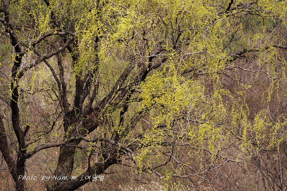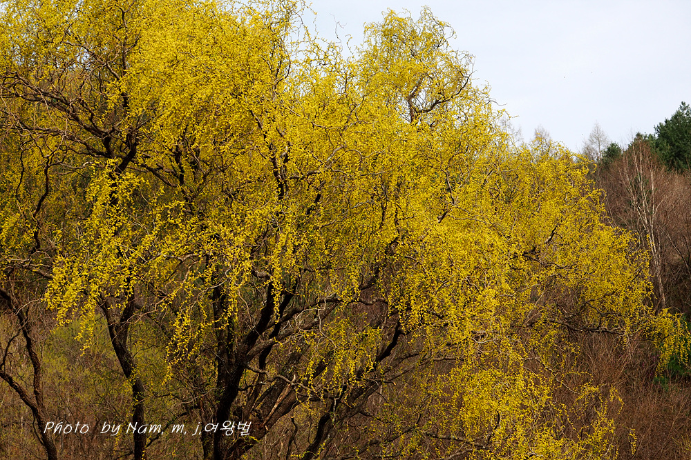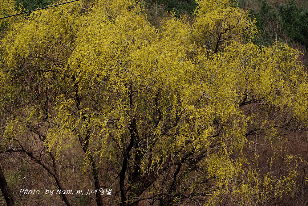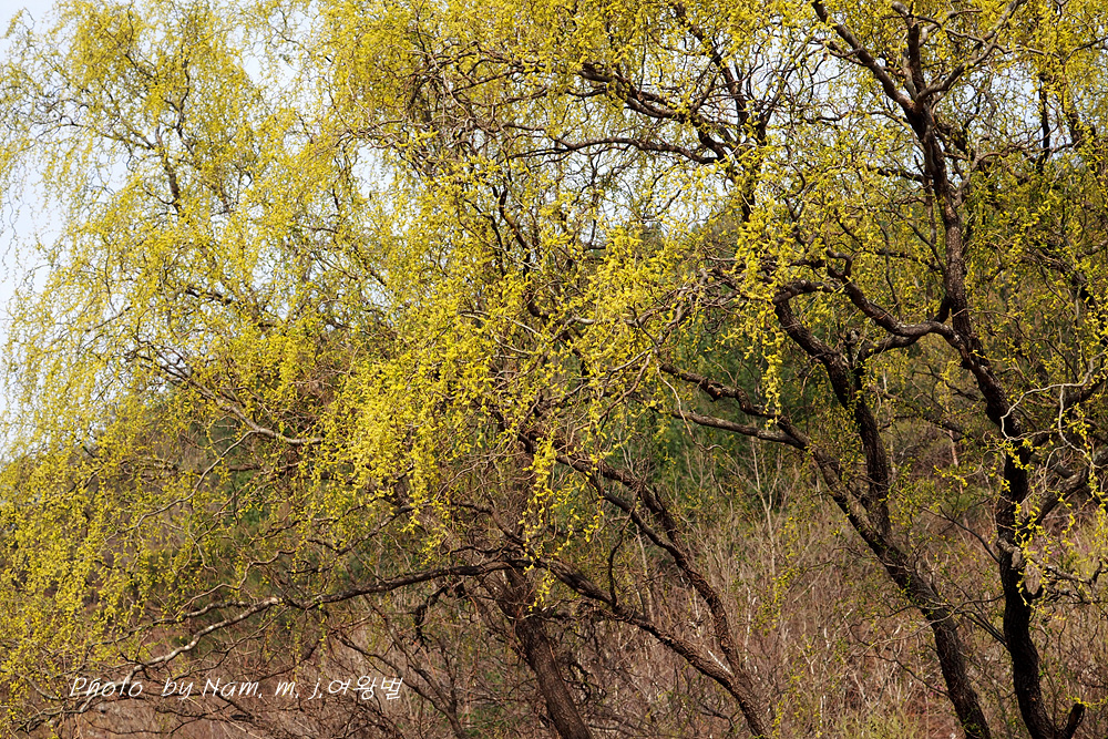 구불거리는 가지를 치렁치렁 늘어뜨리고 온통 노랗게 꽃을 피운 용버들이 눈에 들어온다.