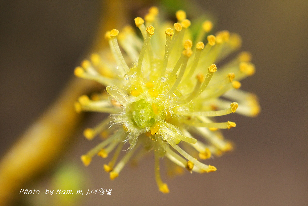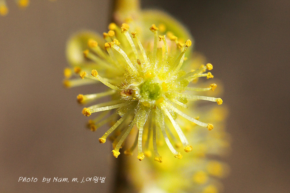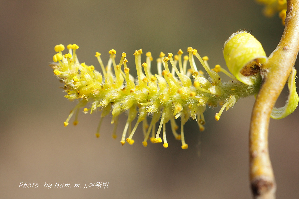 여태 용버들 암꽃만 봐왔는데 수꽃은 처음 만났다.
