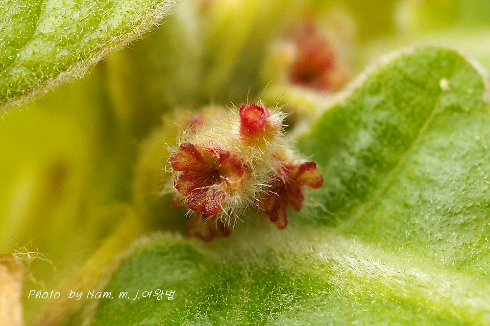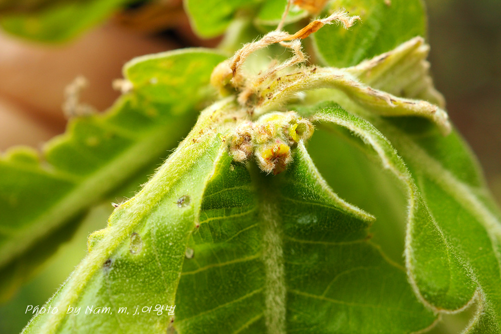 어린 가지, 잎, 암꽃차례에 누른털이 엄청 많다.