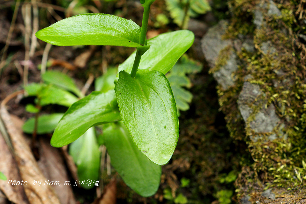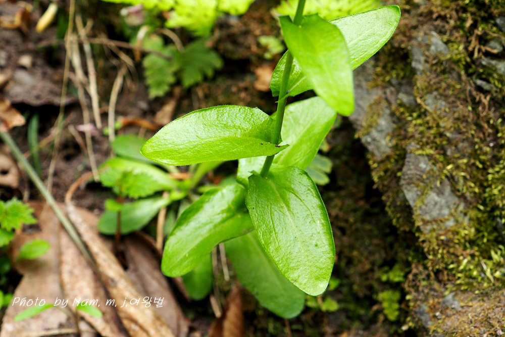 해변의 산기슭, 바닷가에 인접한 암벽 틈이나 산지 숲 속의 돌 틈새에 나는 두해살이풀로 30cm 정도 자란다.