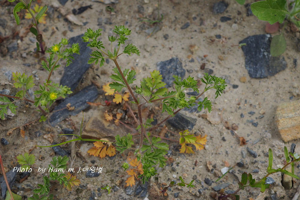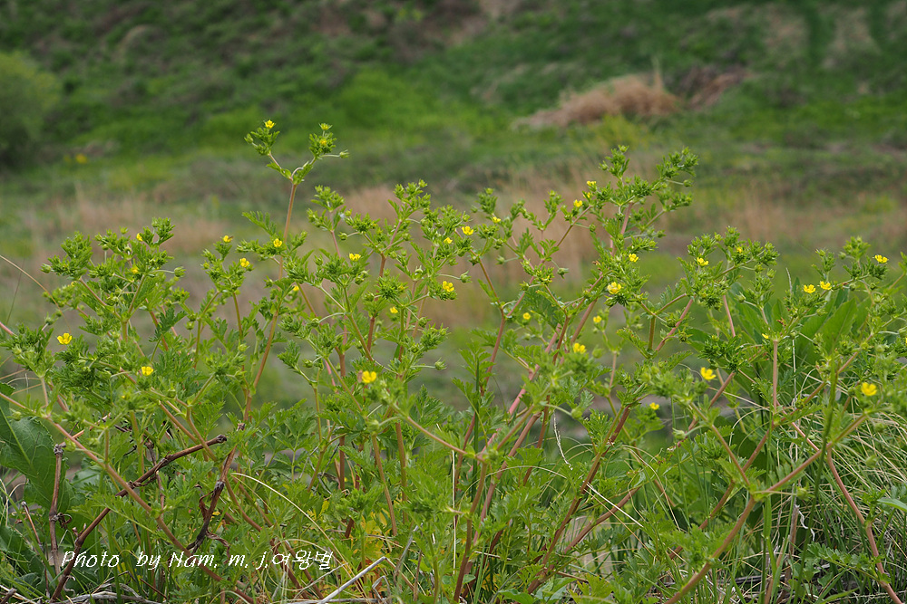개소시랑개비 Potentilla supina L. subsp. paradoxa (Nutt.) Soják: 잎은 호생하고 우상복엽이며 소엽은 5~9개이고 엽병이 길다