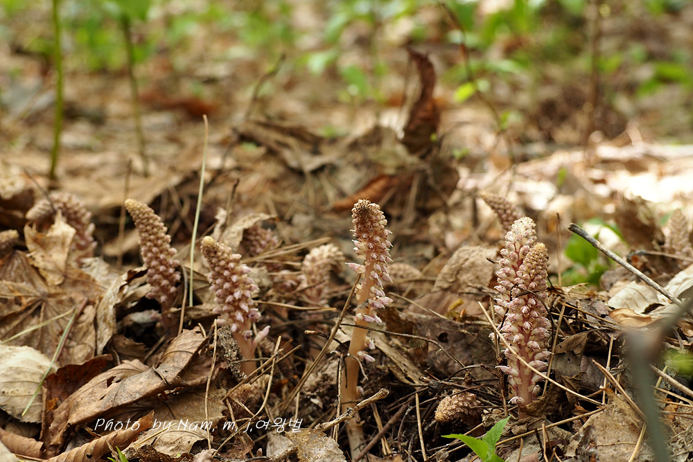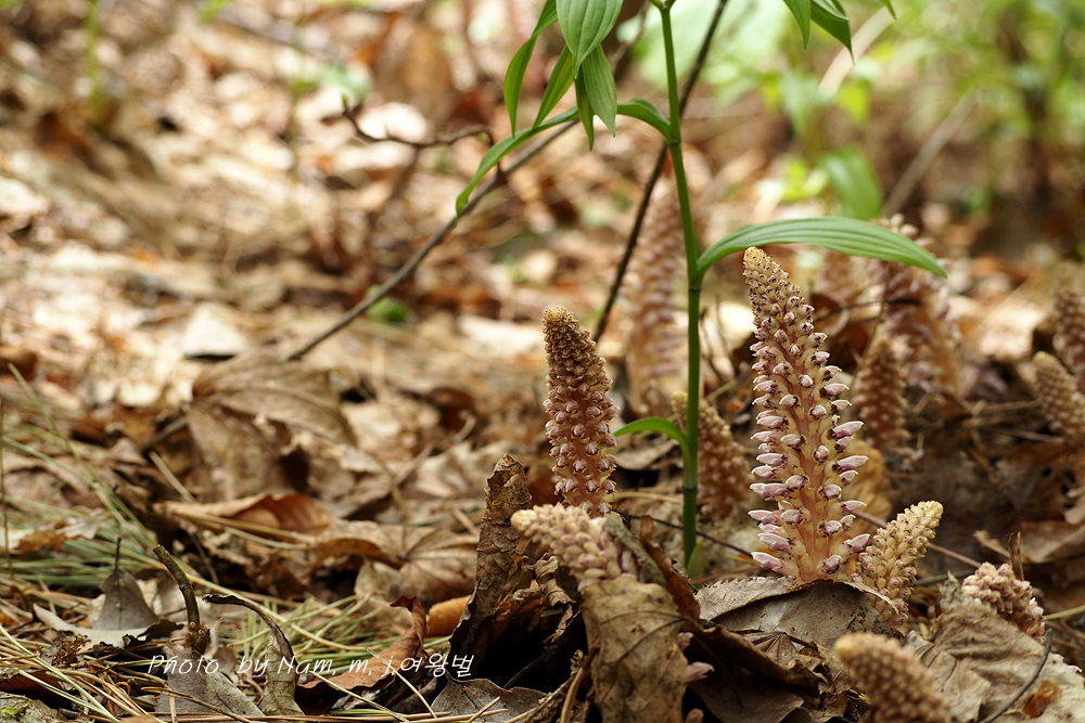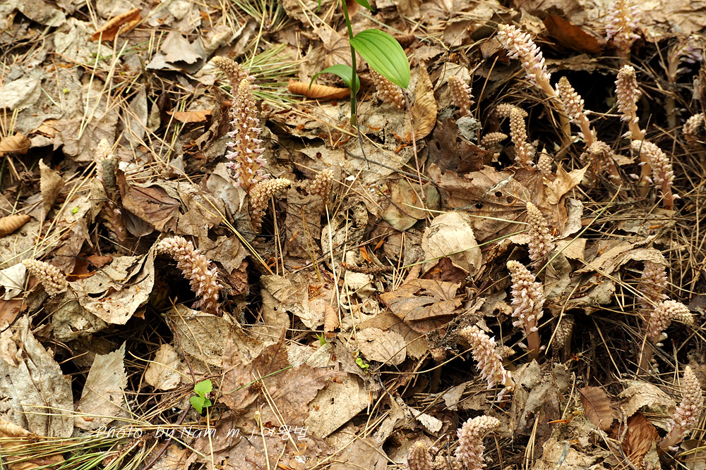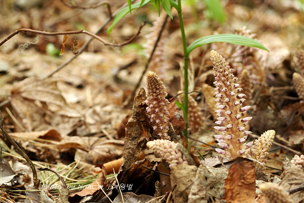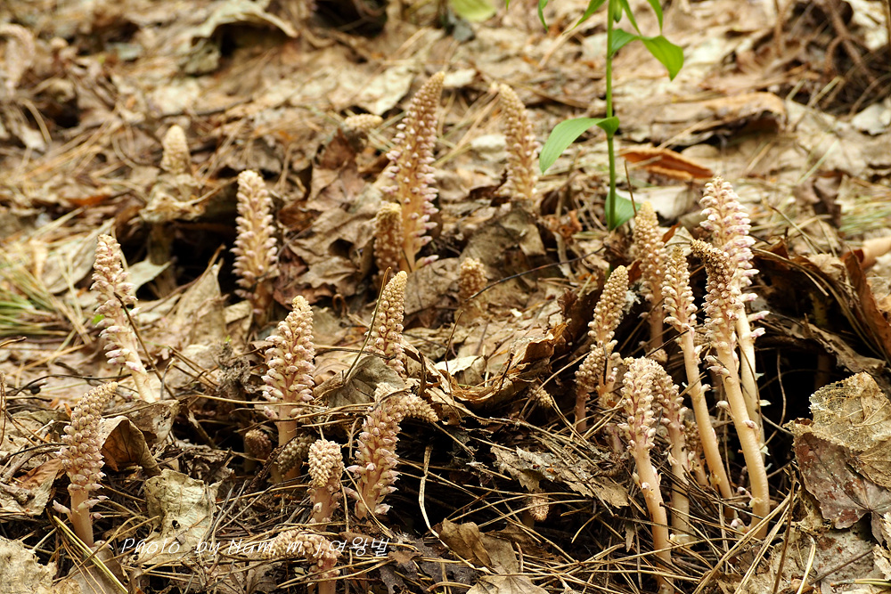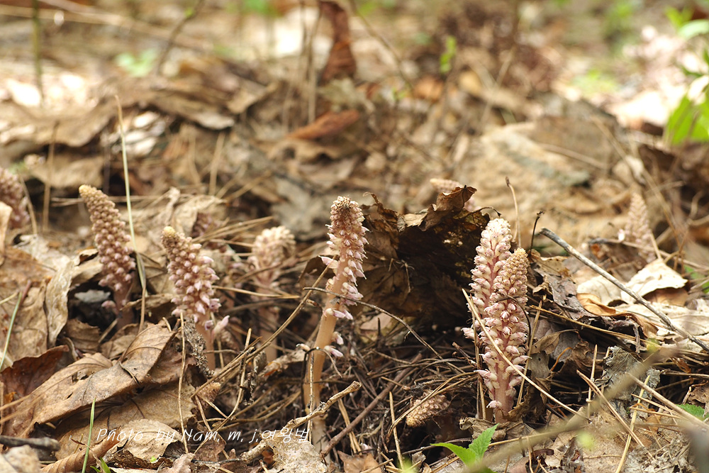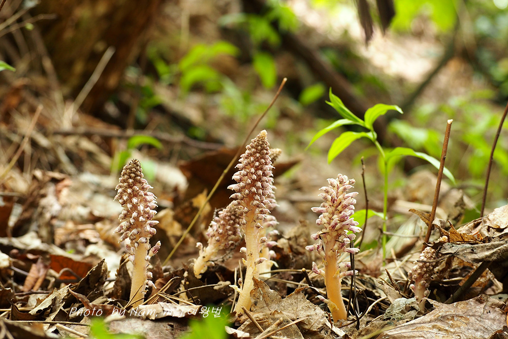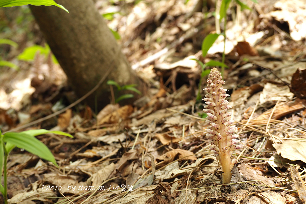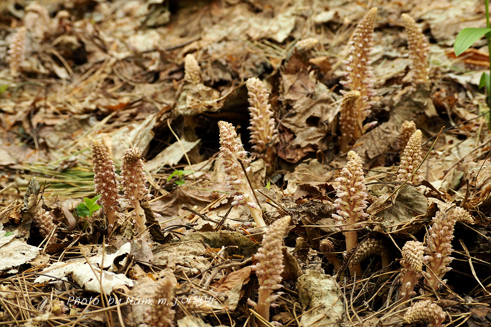 너도밤나무 썩은 낙엽 아래서 사는 기생식물로 울릉도에서 만날 수 있는 녀석이다