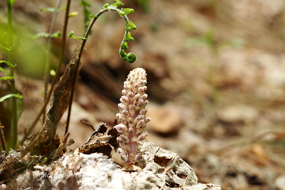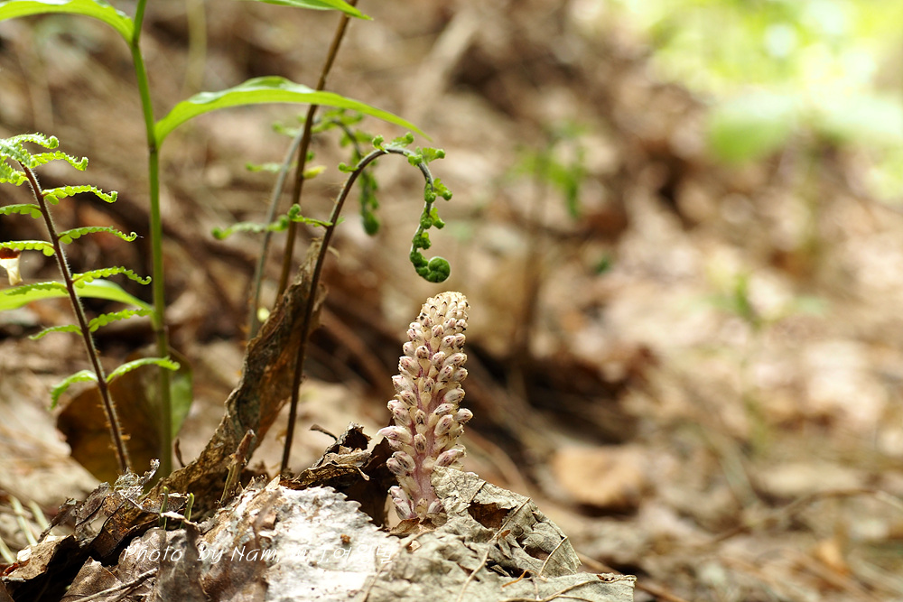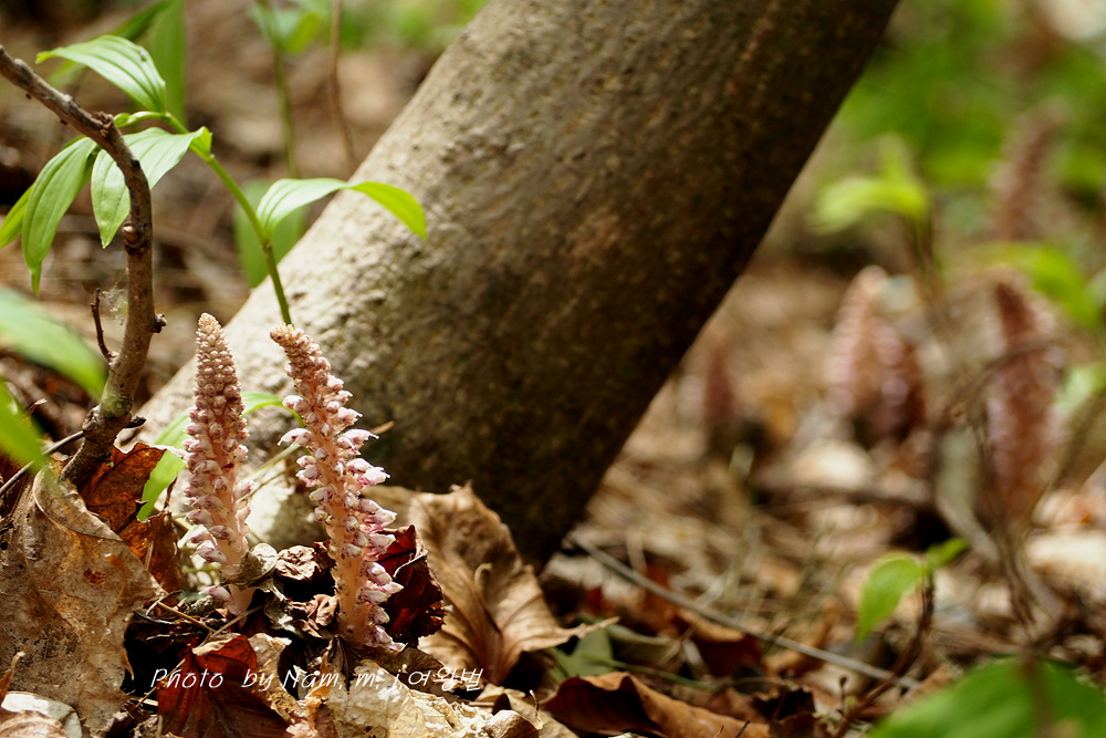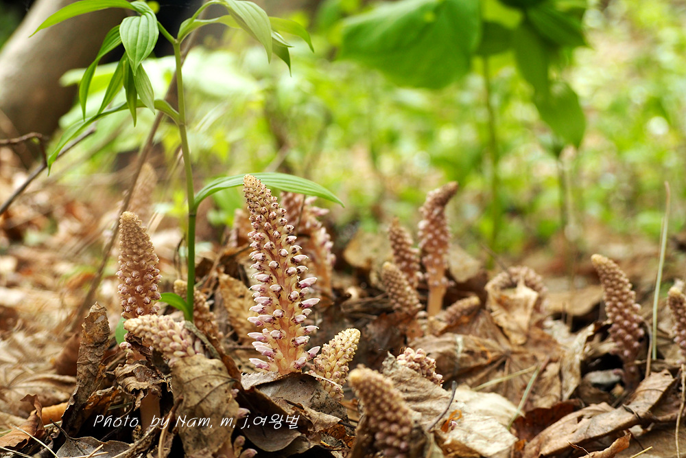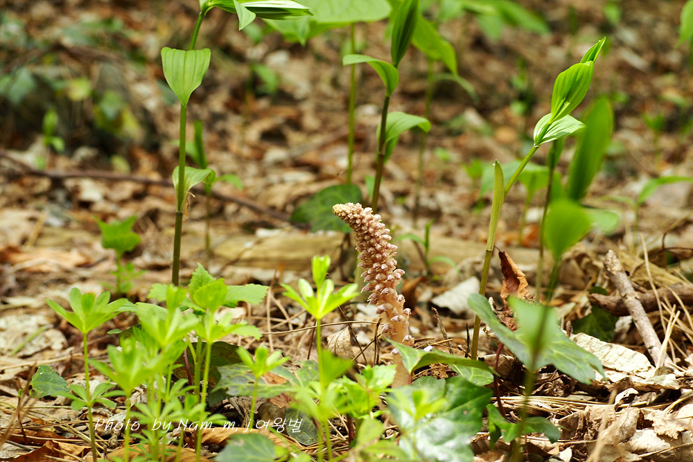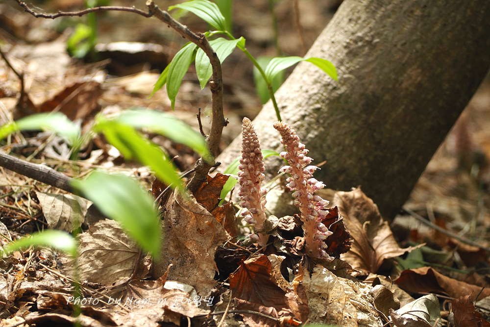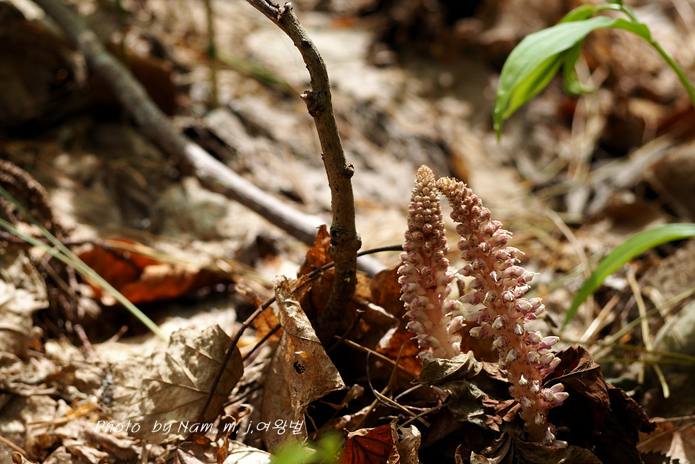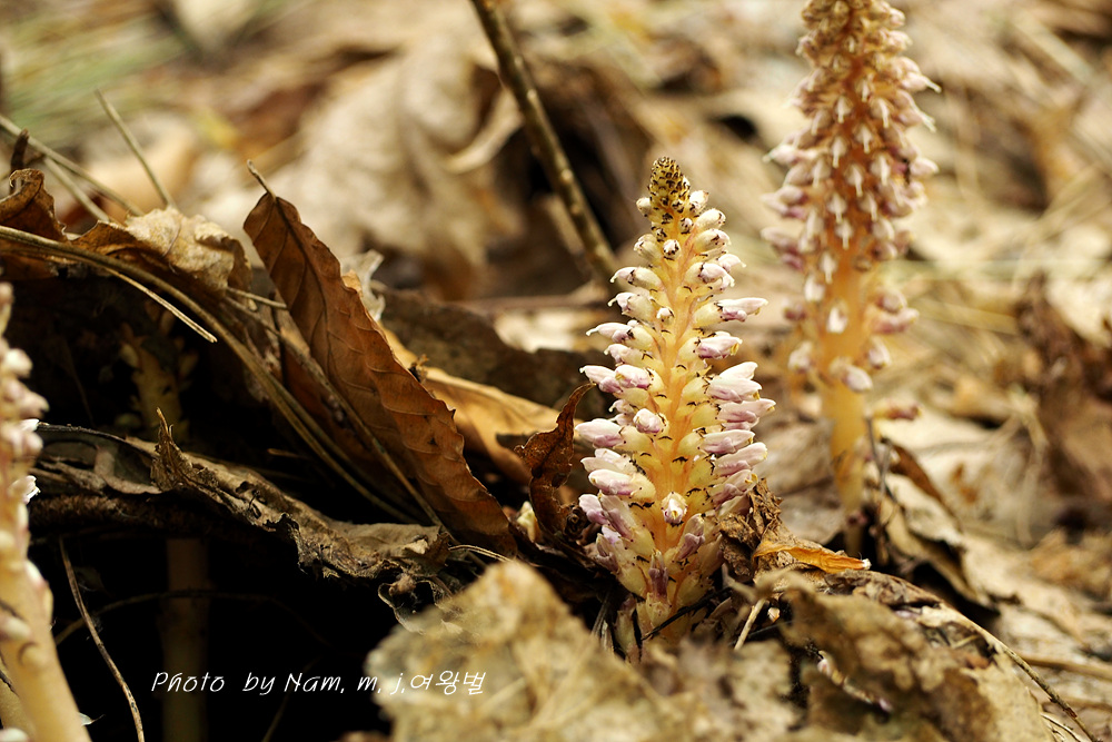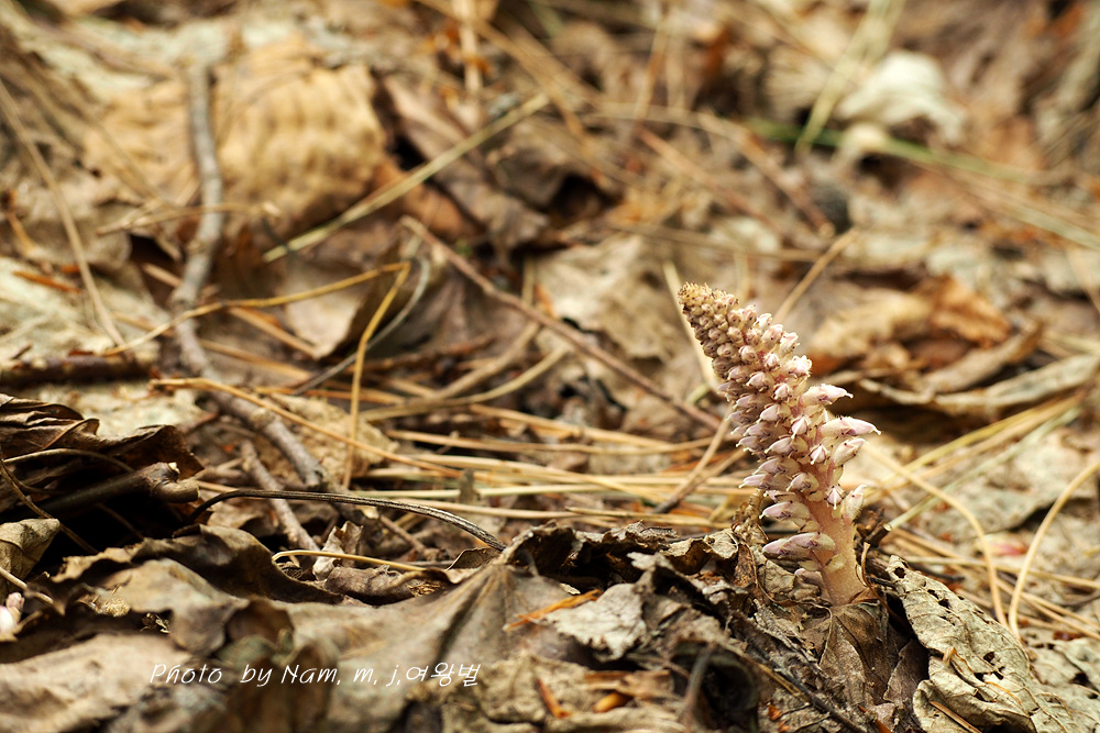 너도밤나무 썩은 낙엽 아래서 사는 기생식물로 울릉도에서 만날 수 있는 녀석이다
