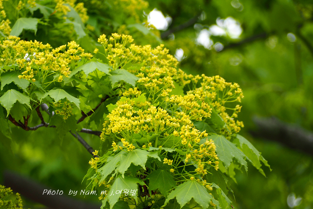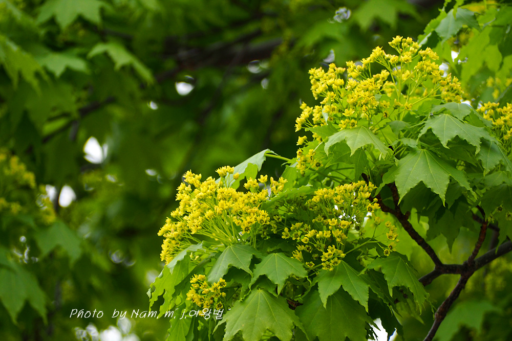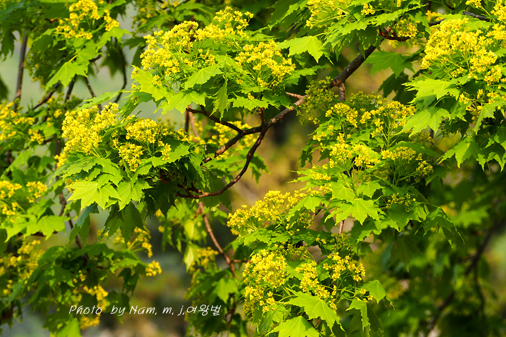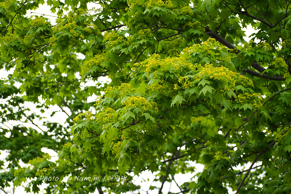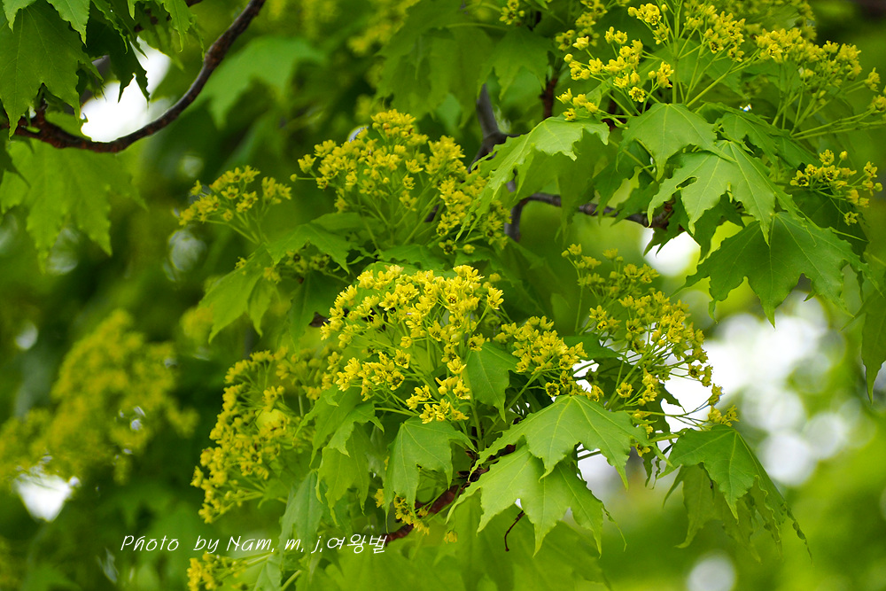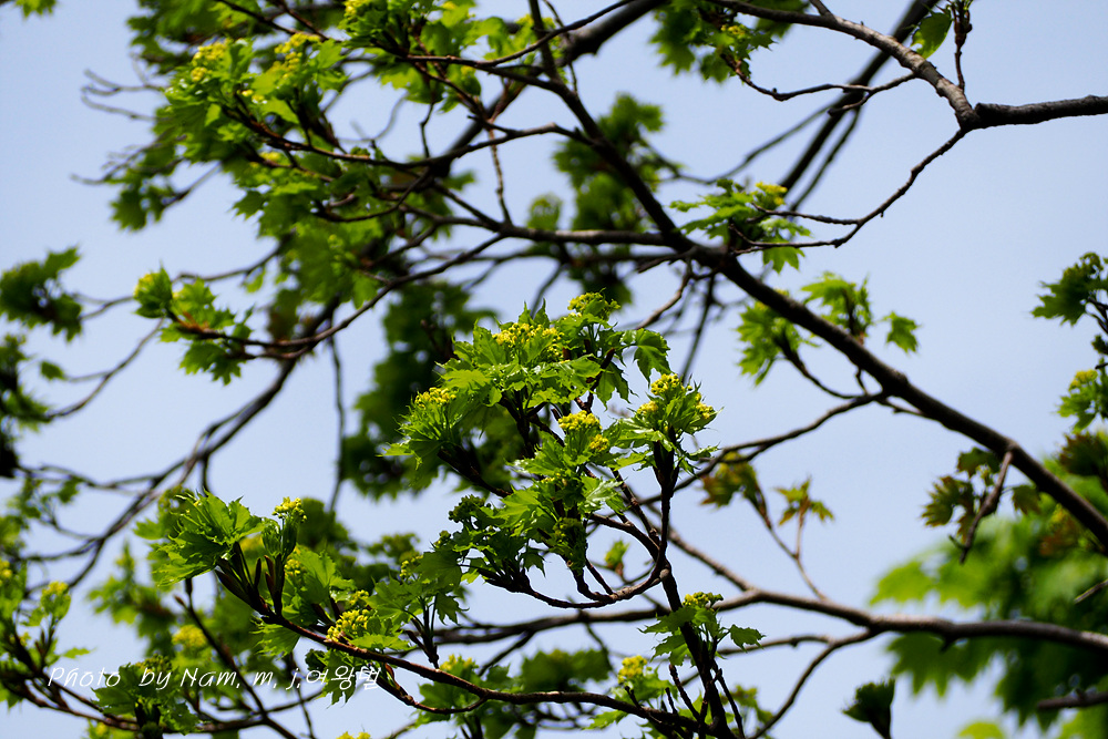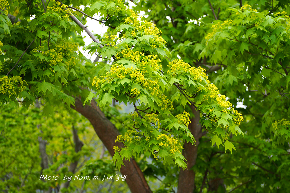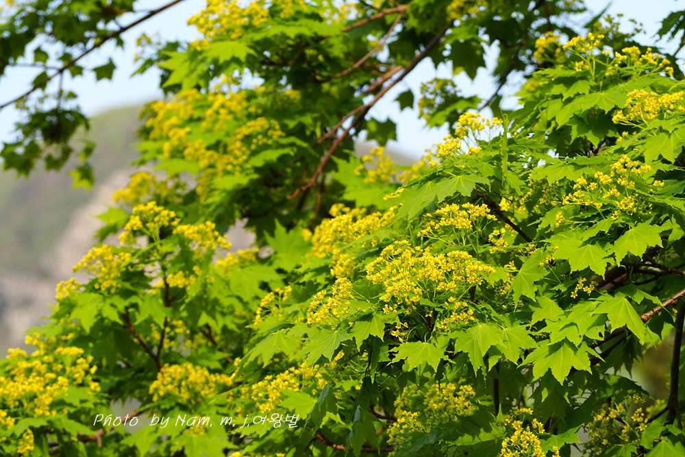 초록이 눈부신 우산고로쇠가 노랗게 개화 중이다.