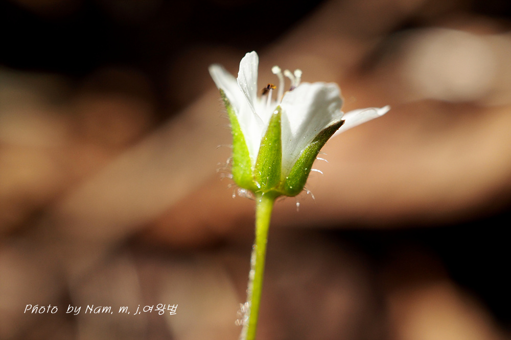 꽃자루가 짧고 꽃받침에 성긴 털이 보이고 화경에도 한 줄 털이 있다.