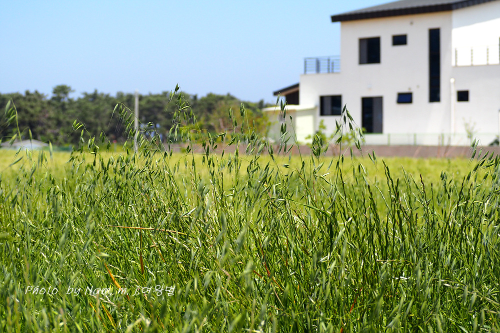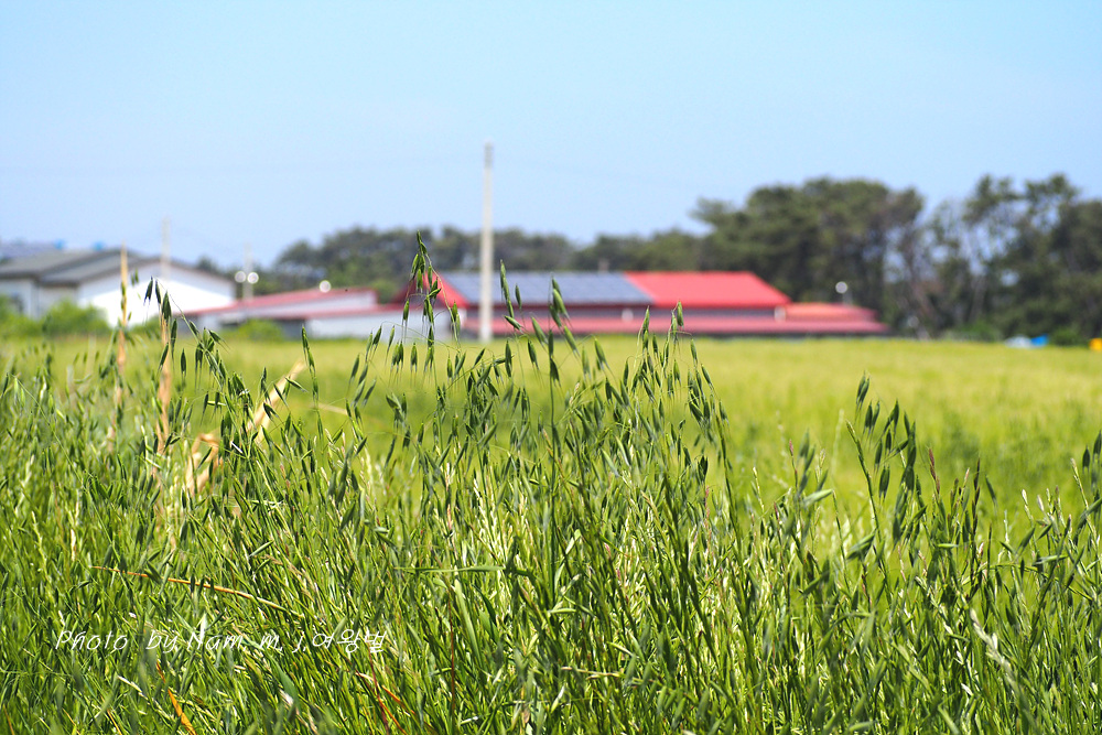 해안 보리밭이 푸르다.