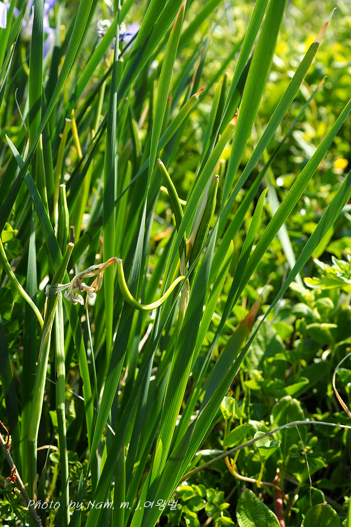 해안 가까운 지역에 자생하는 붓꽃속으로 잎이 실타래처럼 살짝 비틀려 꼬여 있다.