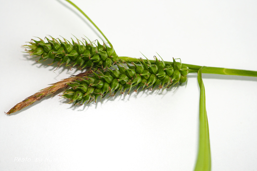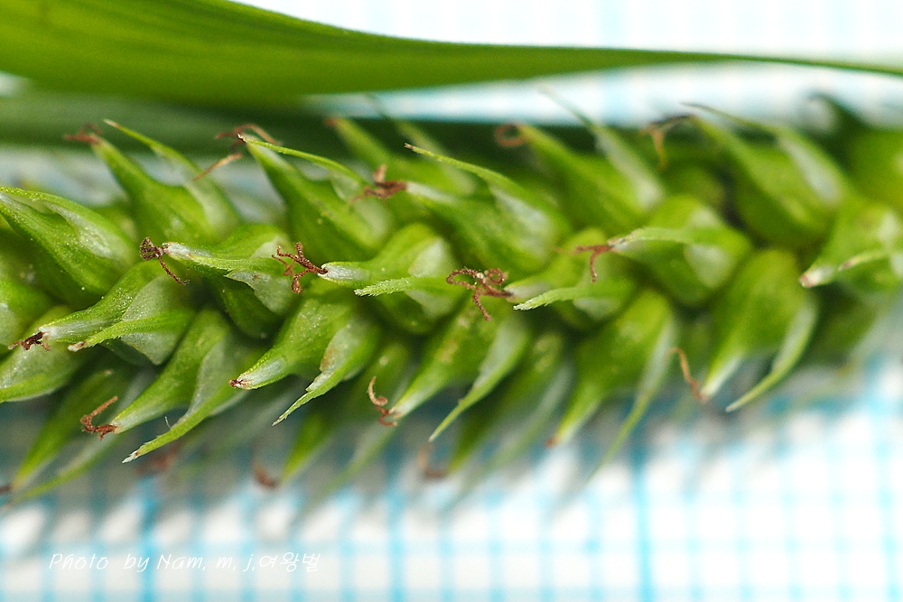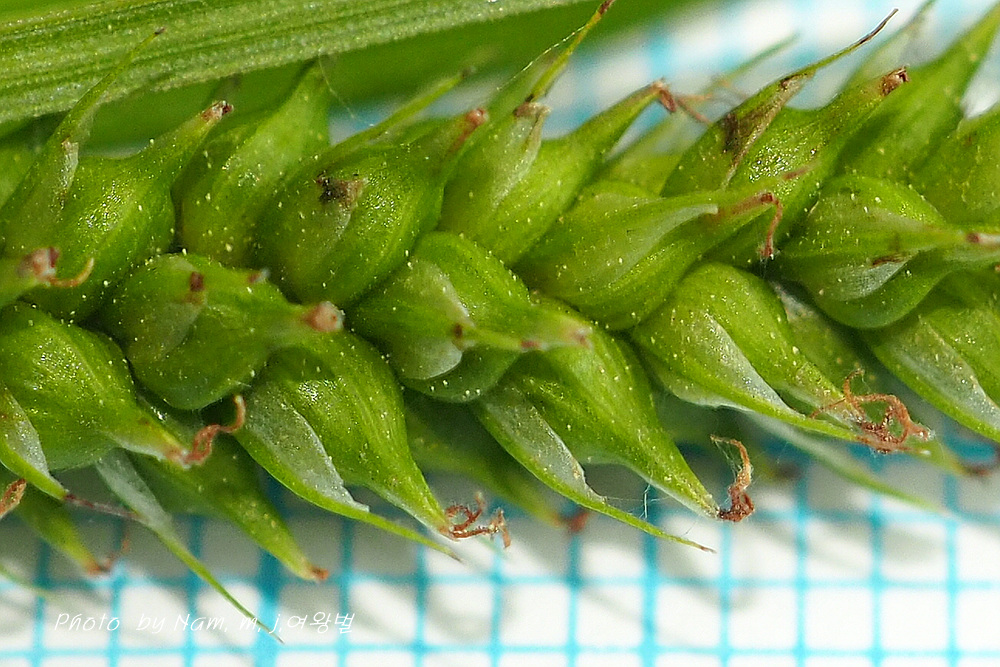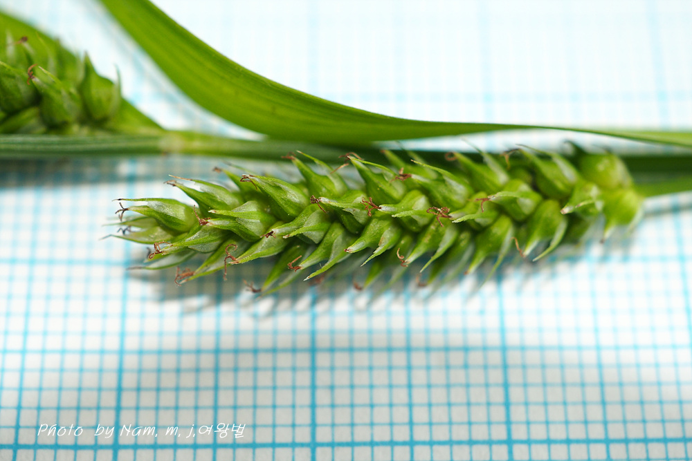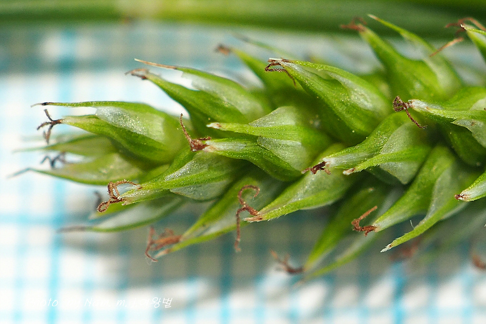 화살사초에 비하여 이삭이 길고 인편 크기가 과포와 같은 길이로 까락이 길다.