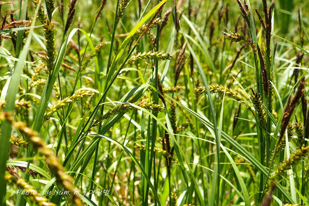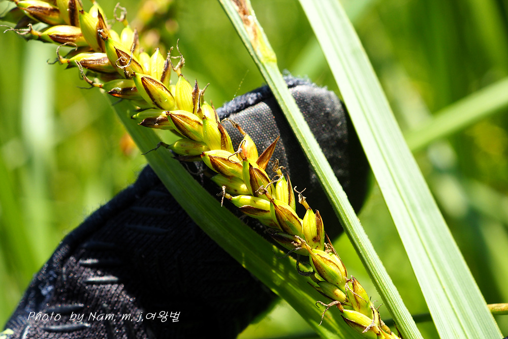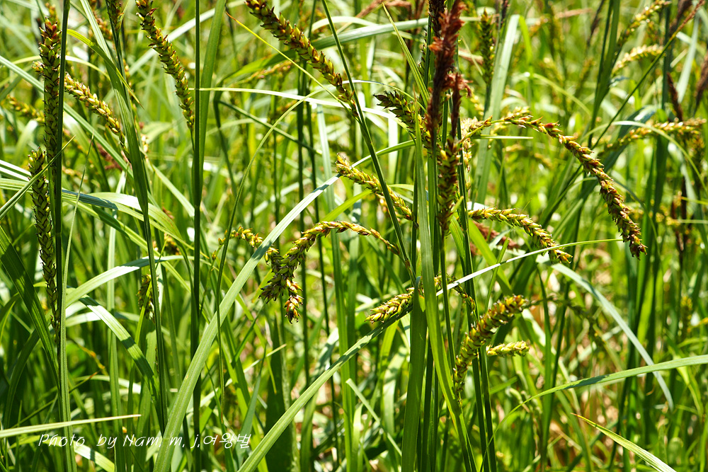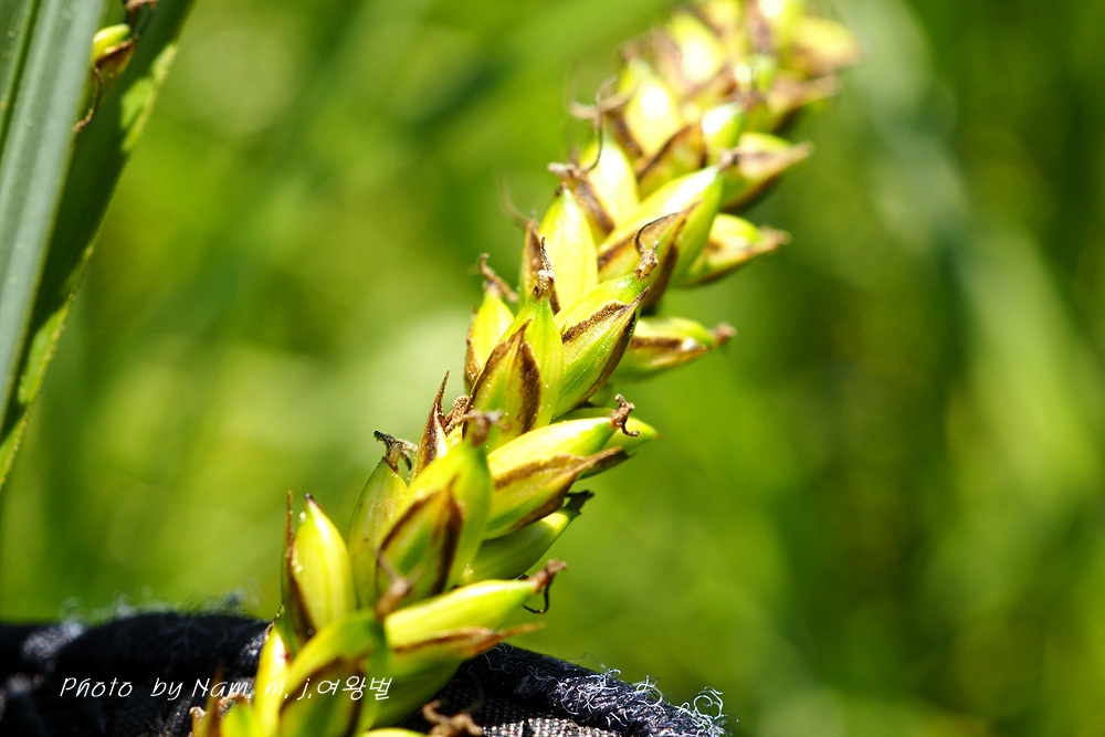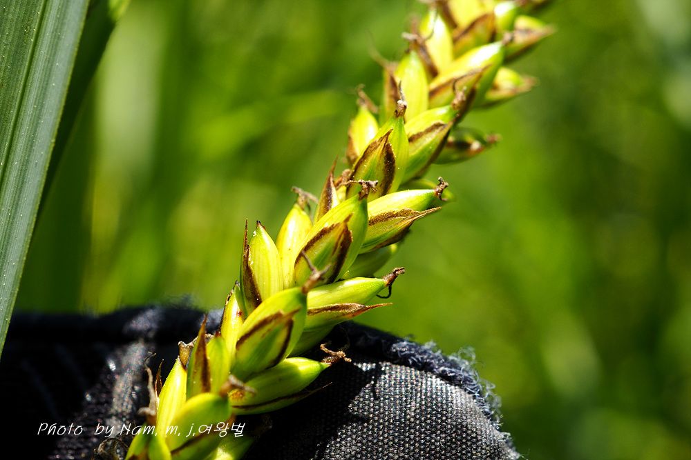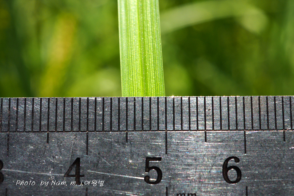 자인편 담갈색 중륵 녹색, 둔두 톱니가 있는 짧은 까락이 있다.