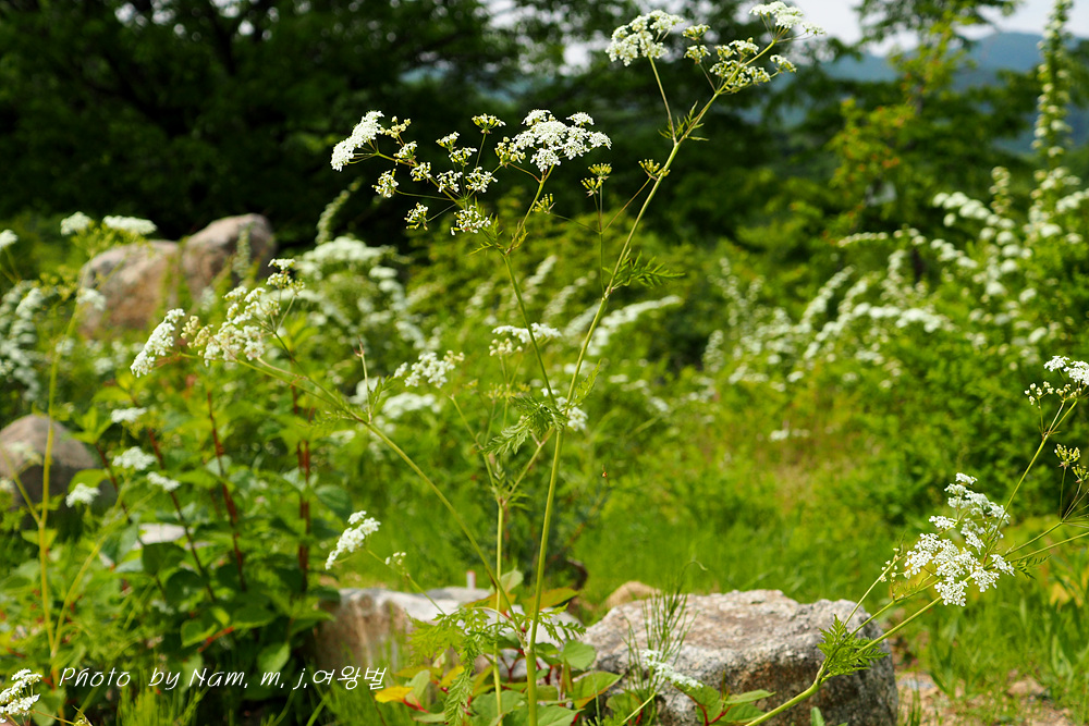 전호와 섞여 자라기도 하는데 전호와 유사하나 열매에 누른빛이 도는 돌기가 있고,
