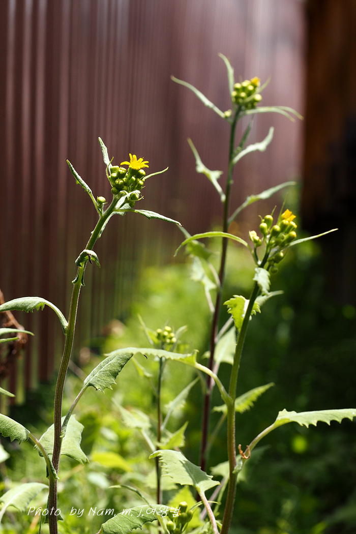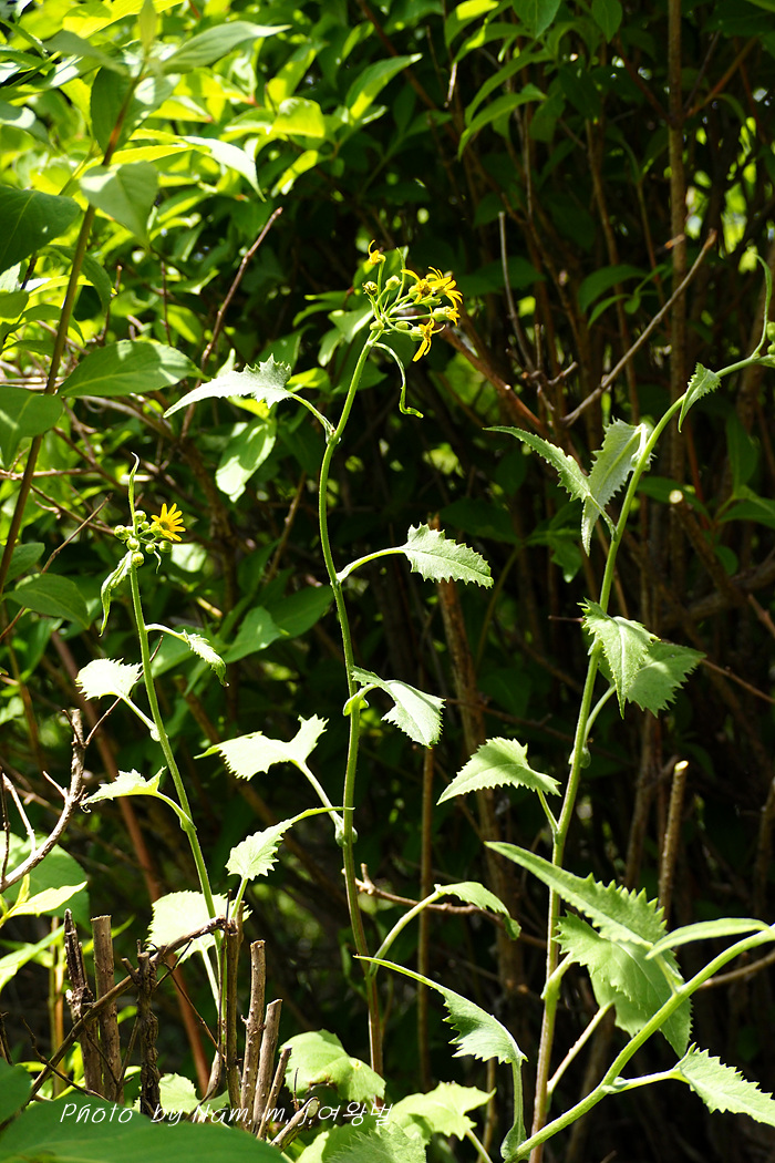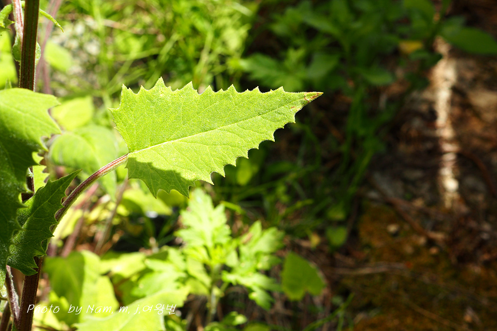 줄기 밑부분의 잎은 잎자루에 날개가 없고 줄기로 약간 흐르거나 줄기를 감싼다.