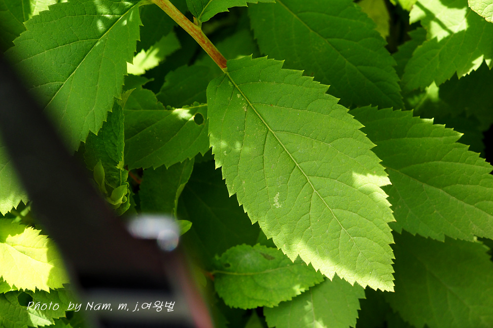 표면에 털이 없으며 표면의 맥이 많이 패여 있고 뒷면은 회록색으로서 맥 위에 털이 있다