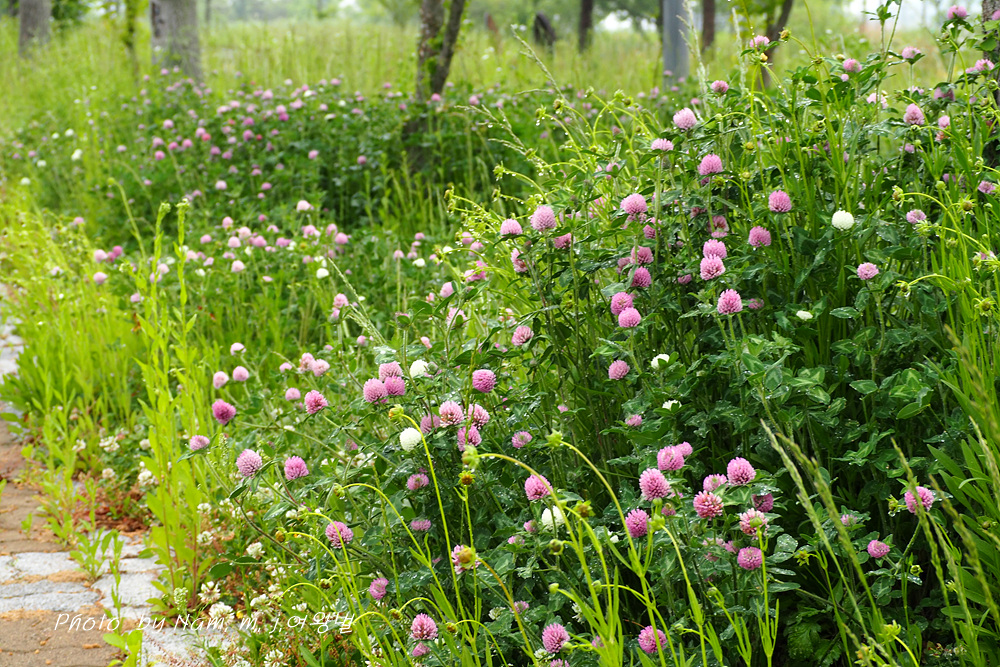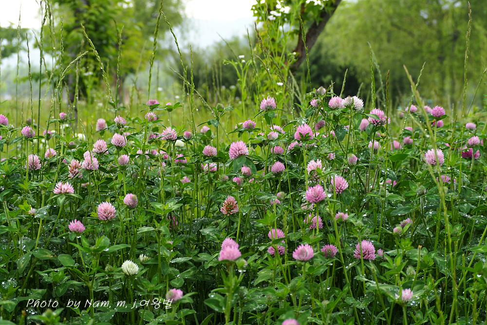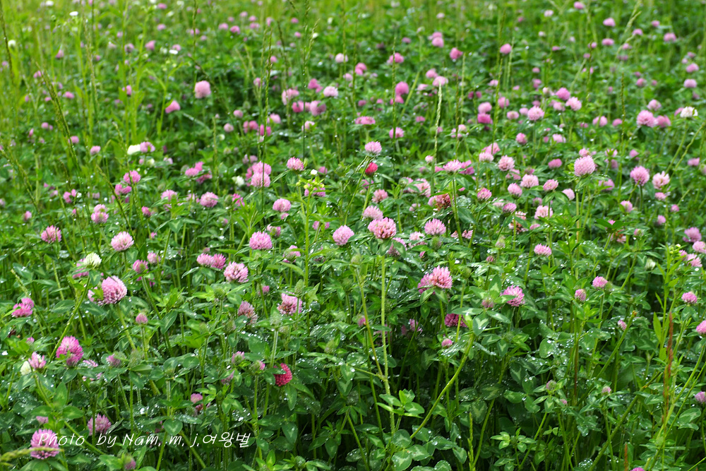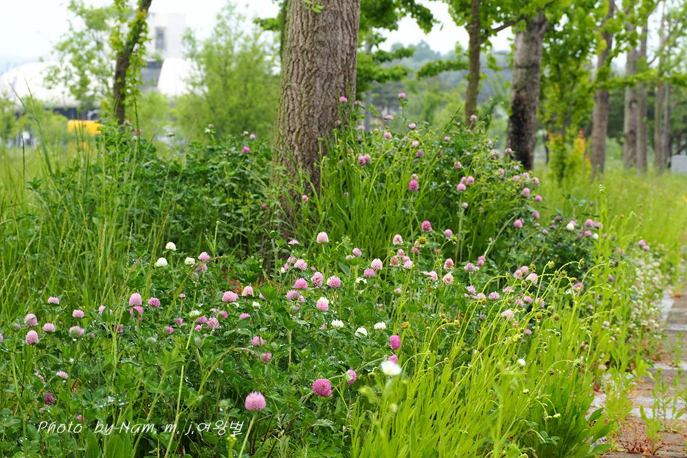 귀화식물이지만 붉은토끼풀이 수로 옆 산책길 풀밭에 무리지어서 꽃을 피우니 그도 보기 좋은 풍경이 되었다.