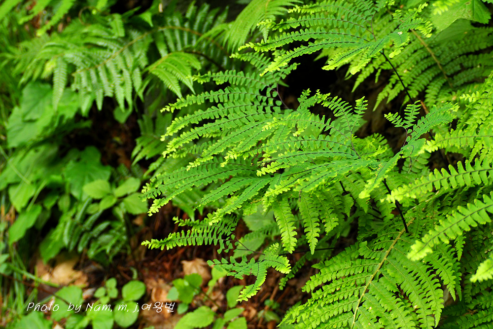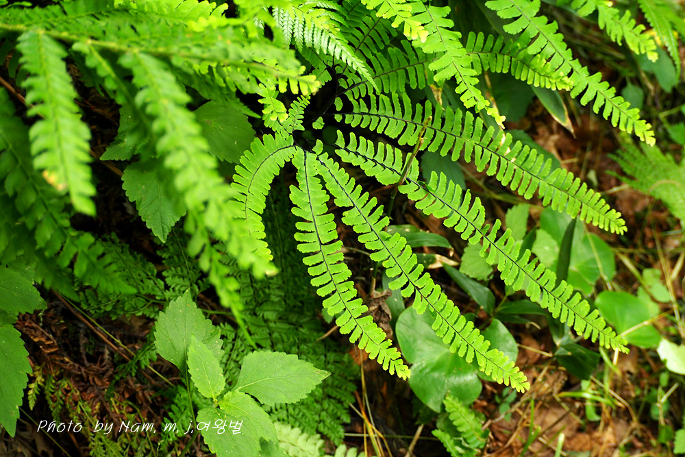 어두운 숲 아래 공작고사리가 손바닥을 펼쳤다.