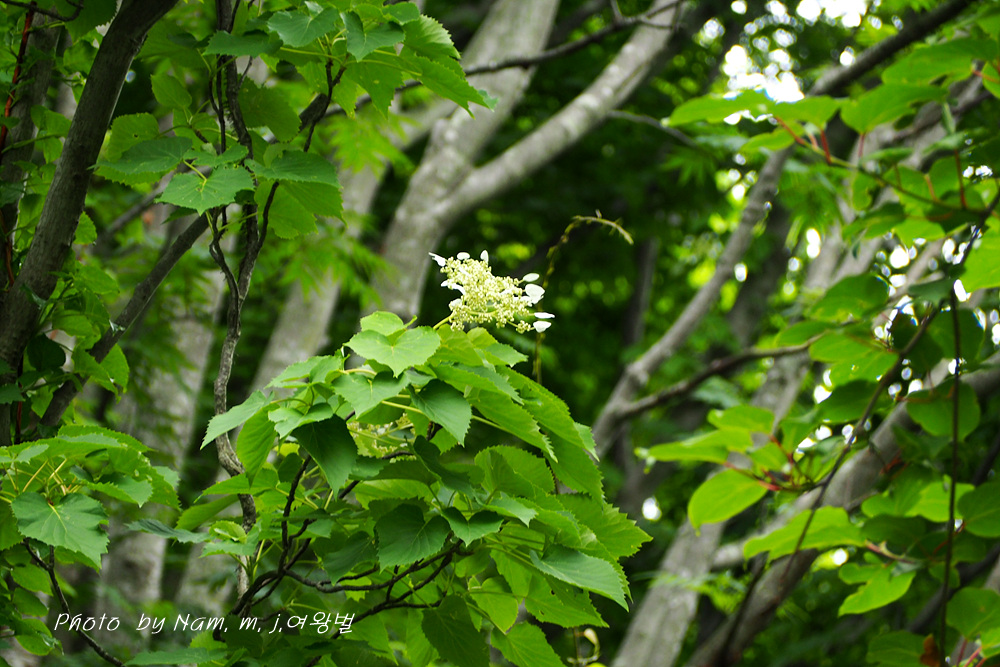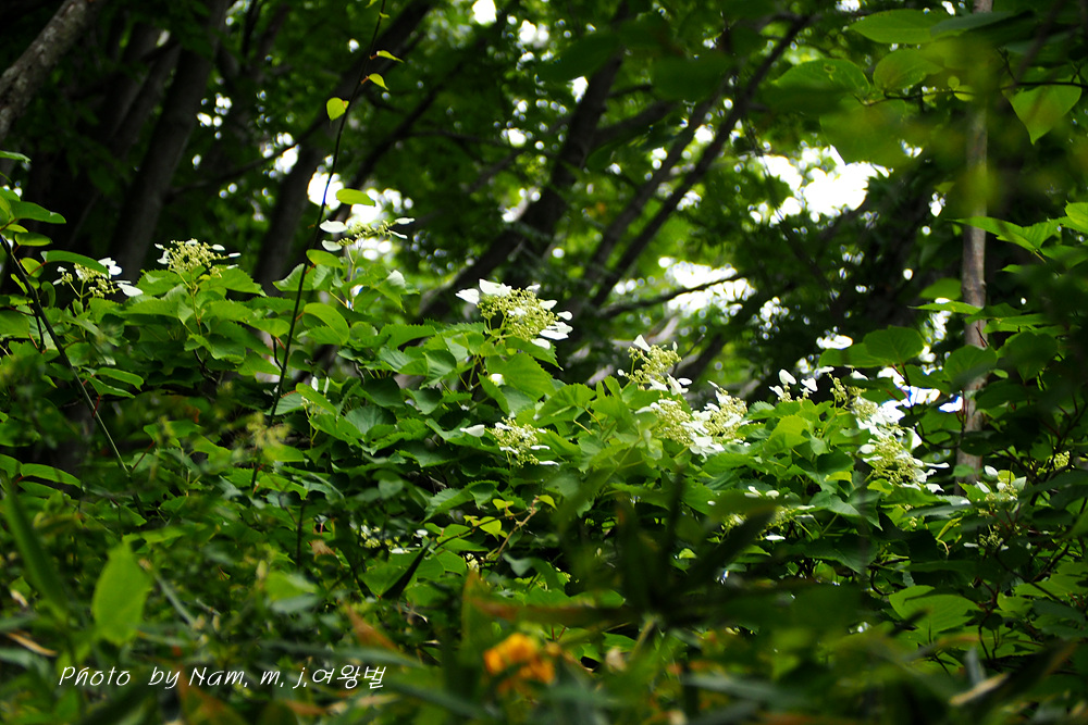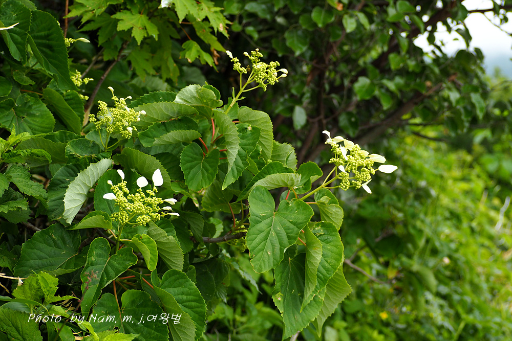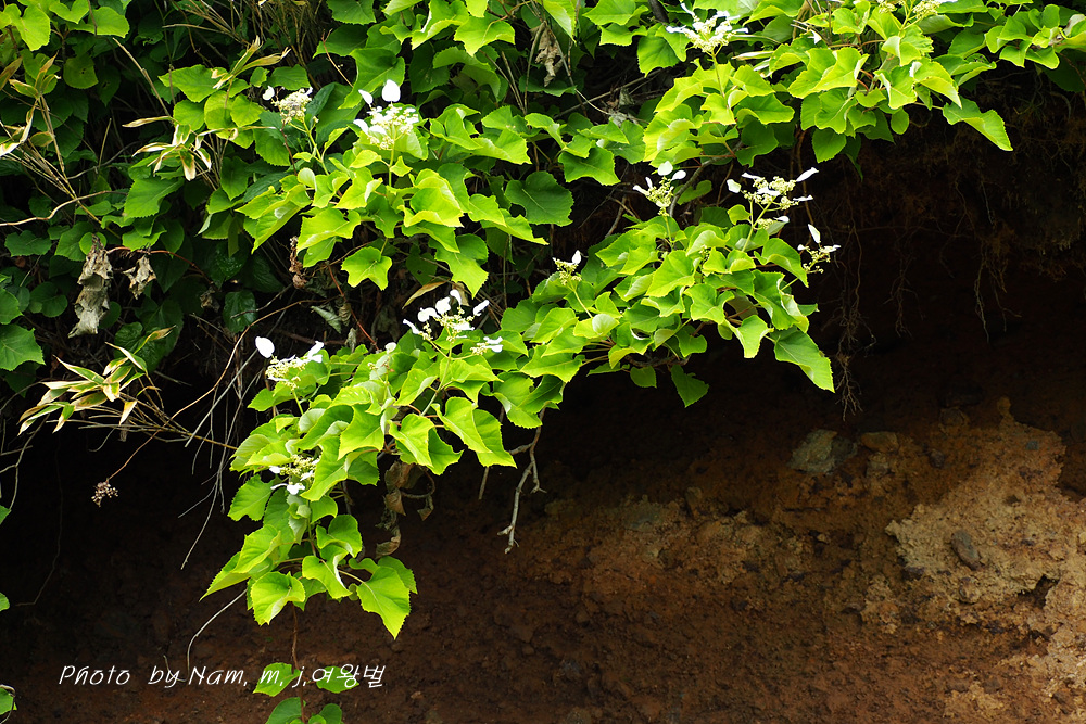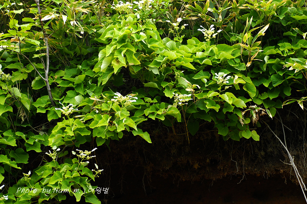 초입 산사면에 바위수국이 주렴처럼 덩굴을 늘어 뜨렸다.
