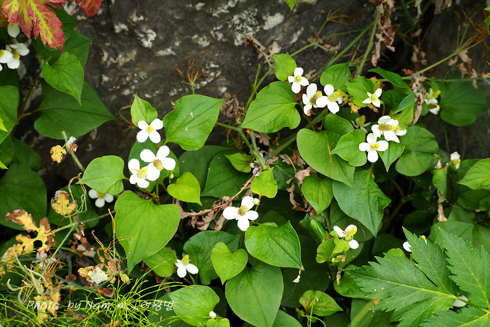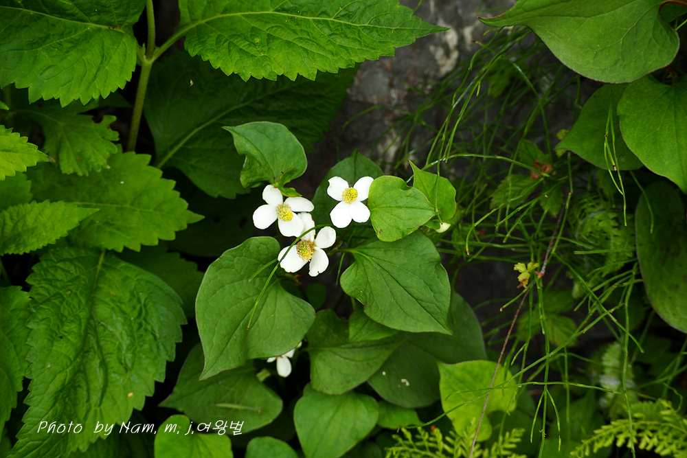 볕이 잘 드는 산책로변에는 약모밀도 한자리를 차지하고 있다.