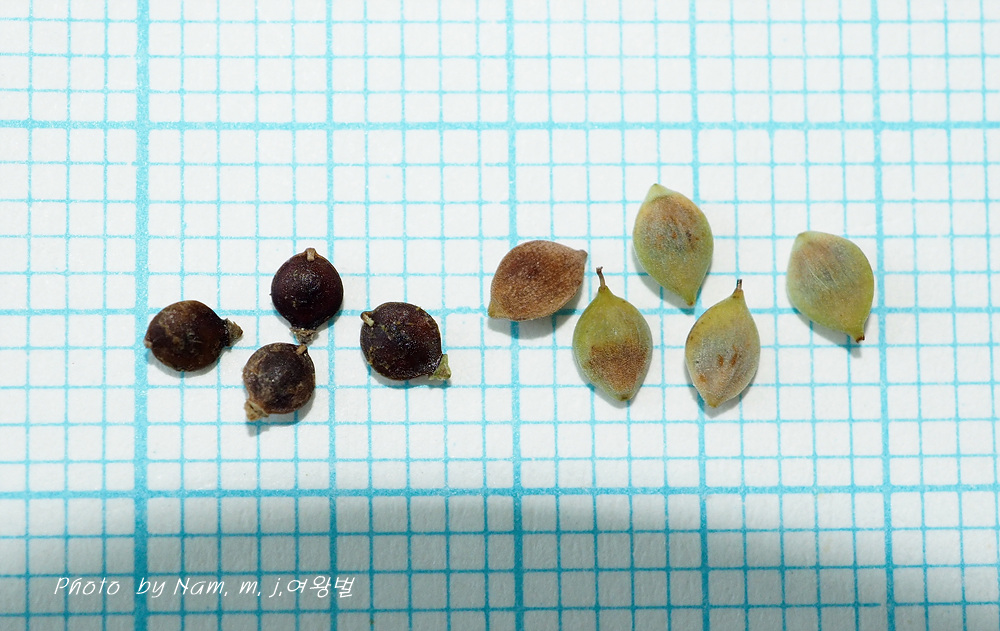 왼쪽 : 왕비늘사초 : 과포가 더 크고 수과 끝이 굽지 않았다