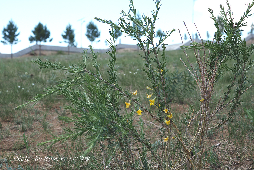 혹시 난쟁이골담초 Caragana pygmaea 가 아닐까 생각했는데 엽신이 너무 좁고 가늘다.
