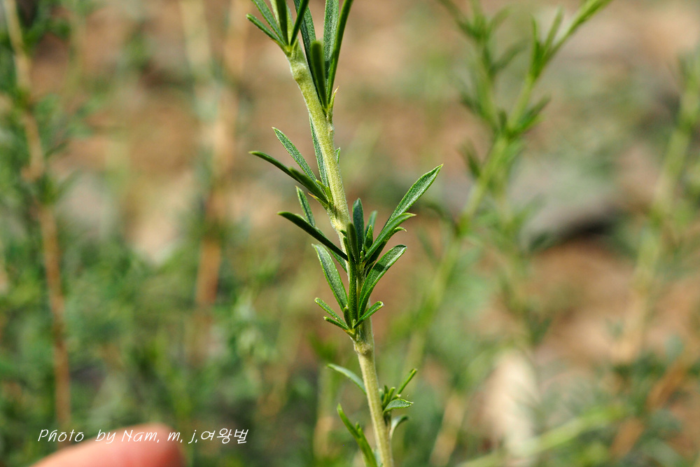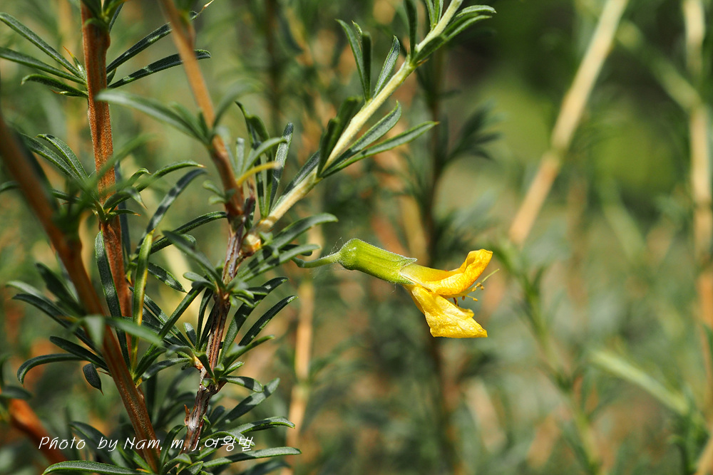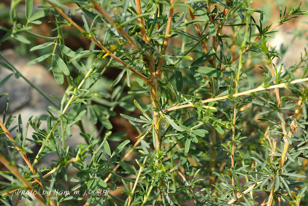 자료를 정리하는데 난쟁이골담초에 비하여 엽폭이 가늘고 긴 '좁은잎골담초' Caragana stenophylla, '좁은잎난쟁이골담초' 란 국명이 확인된다.