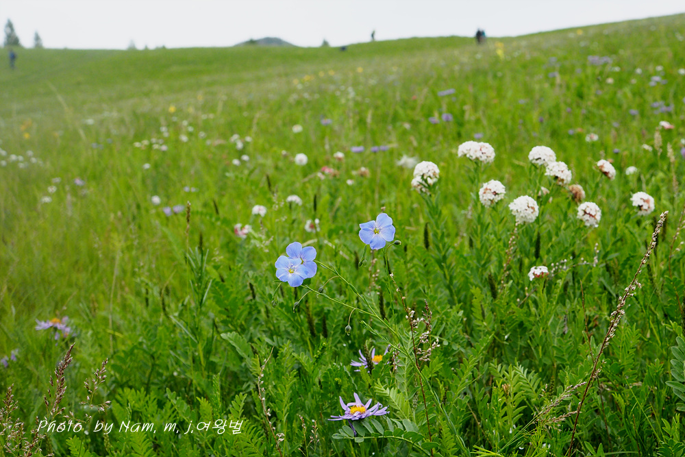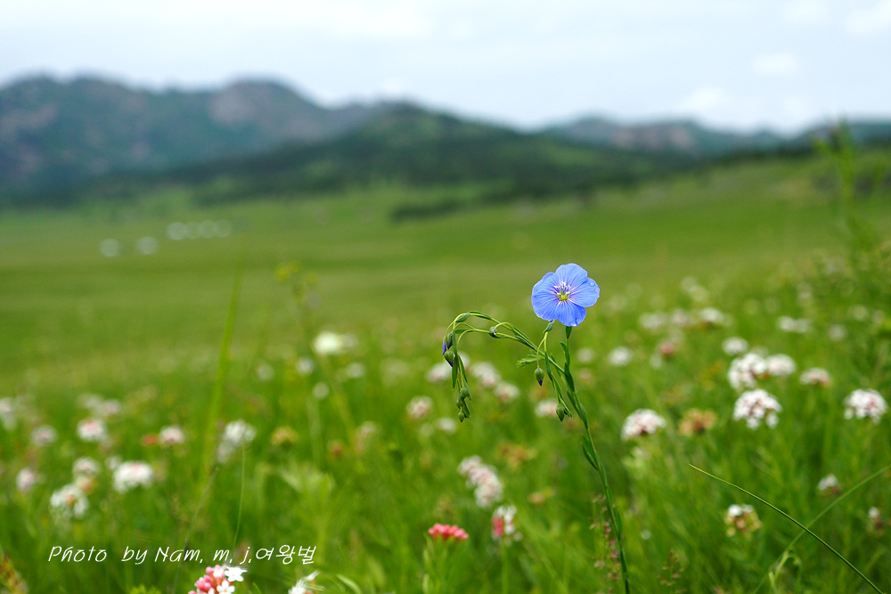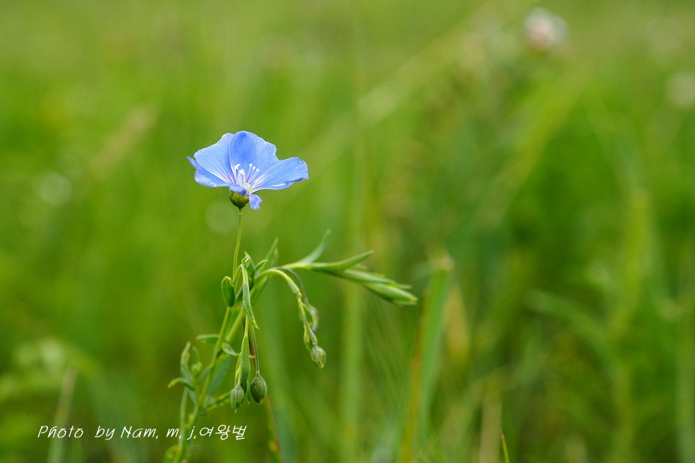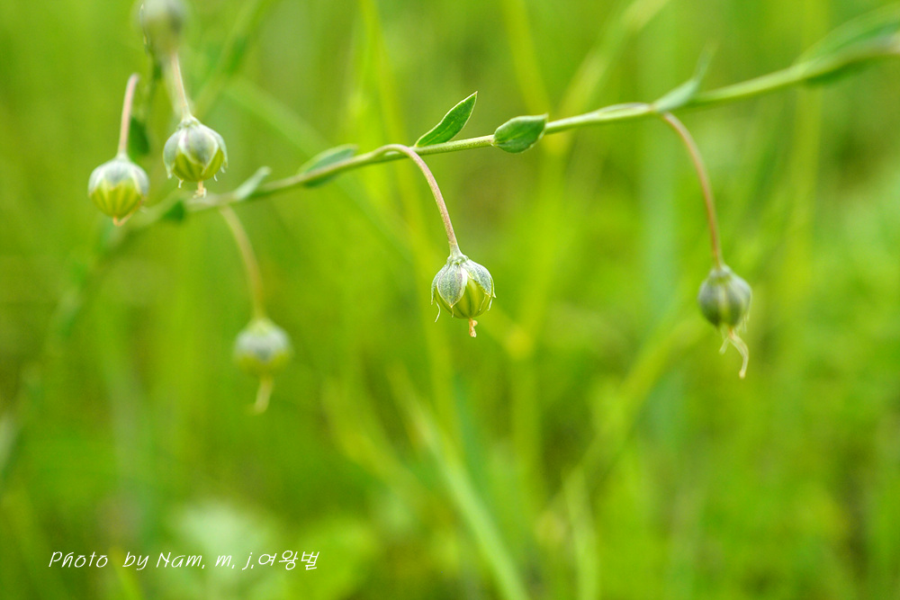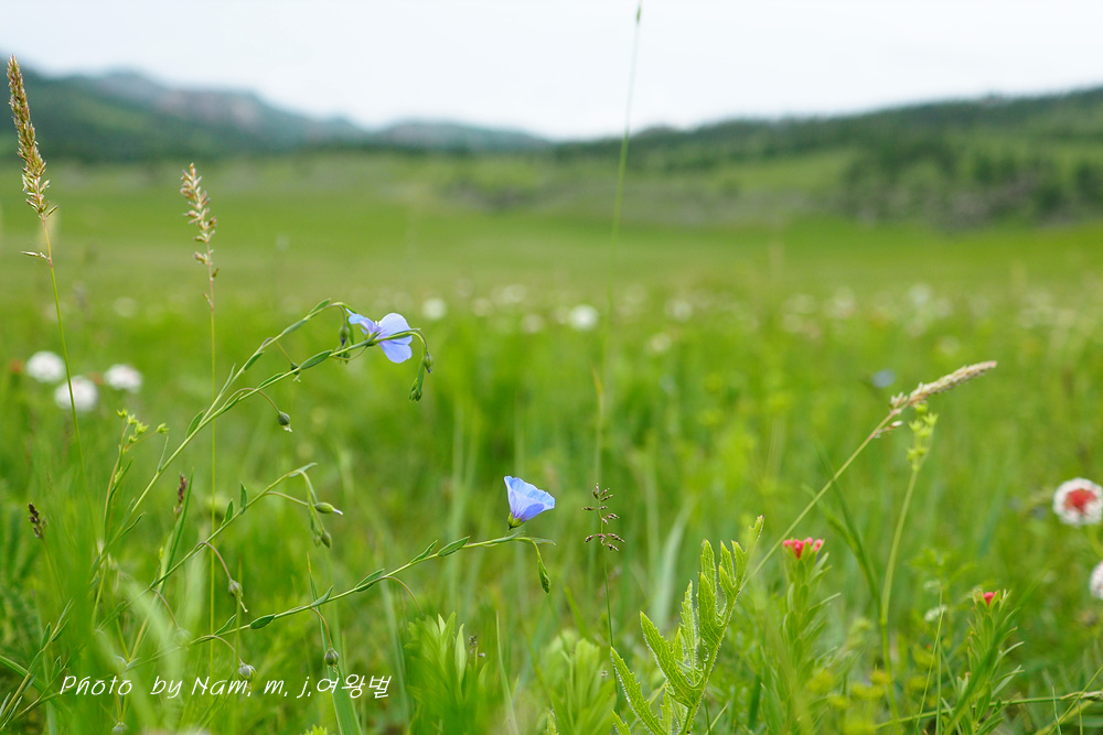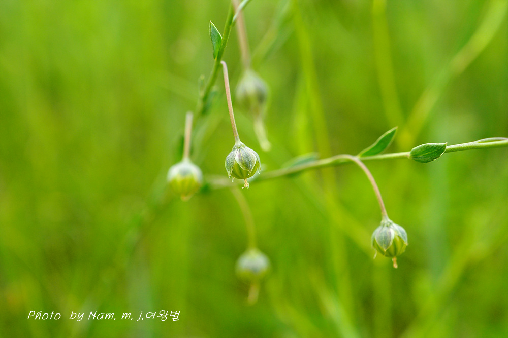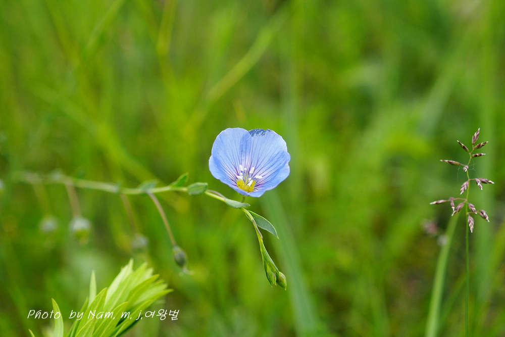 피뿌리풀이 깔린 언덕에 구슬처럼 동그란 방울 열매를 단 아마가 파랗게 꽃잎을 펼쳤다.