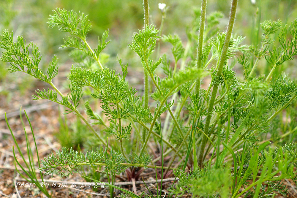 잎은 코스모스보다 더 가늘게 세열하여서 한국의 할미꽃과는 차이가 많았다.
