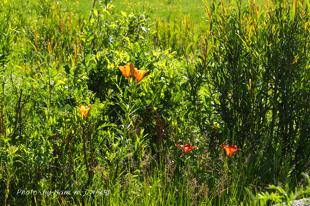 숙영지 북쪽 산지의 습한 물골 주변의 날개하늘나리 군락은 환상적이었다..
