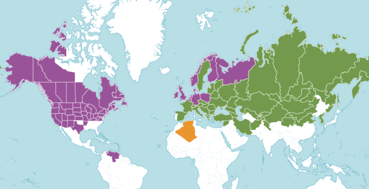 분포 : 발트해 연안국가, 중앙 유럽 러시아, 중국 북중부, 치타 체코슬로바키아 동유럽 러시아, 프랑스 그리스 헝가리 내몽골, 이란 이르쿠츠크 이탈리아 캄차카 카자흐스탄 하바롭스크 키르기스스탄, 대한민국 크라스노야르스크 크림, 레바논-시리아, 마가 단, 몽골 북 코카서스, 북서 유럽 러시아, 연해주 등 대륙북부에 폭 넓게 분포하고 있다.