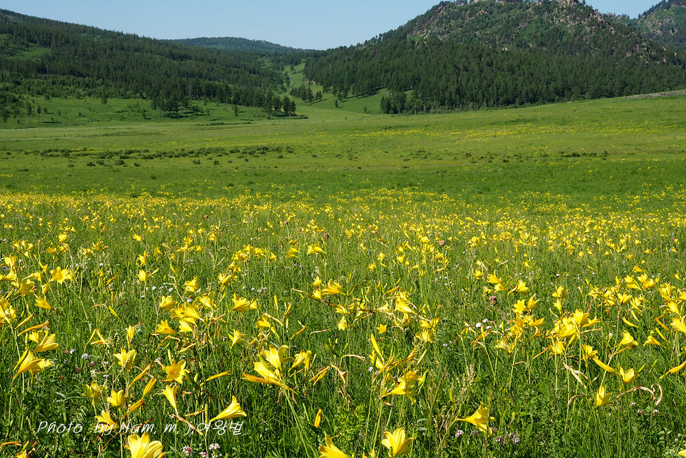 한갈노르 호수에서 봤던 키 작은 원추리와는 다른 꽃가지가 깊게 갈라진 녀석이다