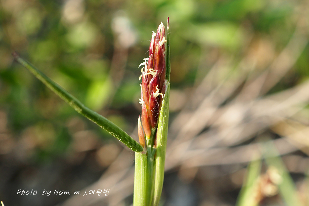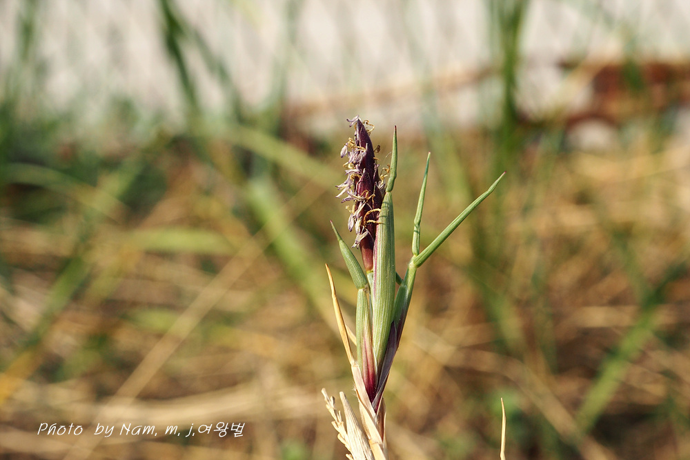 화서 아래 마지막 잎이 포처럼 화서를 감싸고 있고 화서와 소수가 가장 큰 잔디속이다.