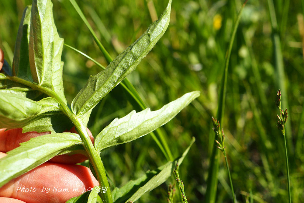 잎자루는 위로 갈수록 짧아지며, 부드러운 털이 있다.
