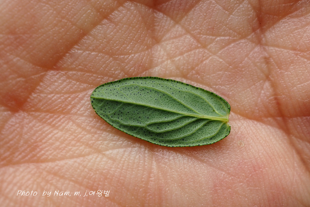 전체에 검은 기름샘이 있고, 꽃잎의 가장자리가 물결 모양이다.