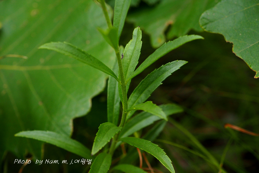은 마주나며, 넓은 피침형 또는 좁은 난형으로 길이 4~8cm, 폭 5~8mm,