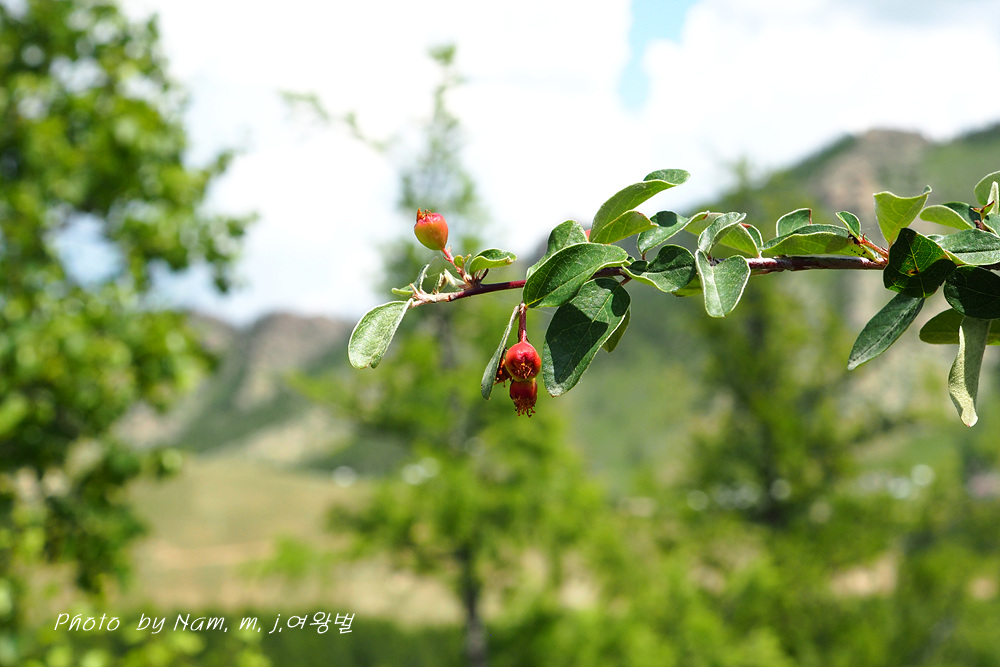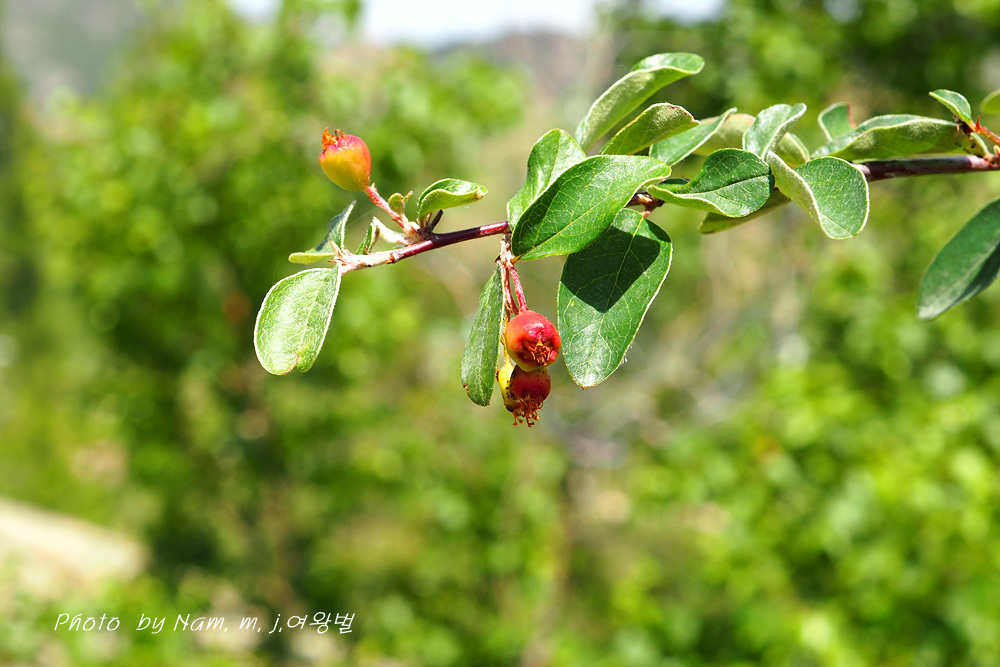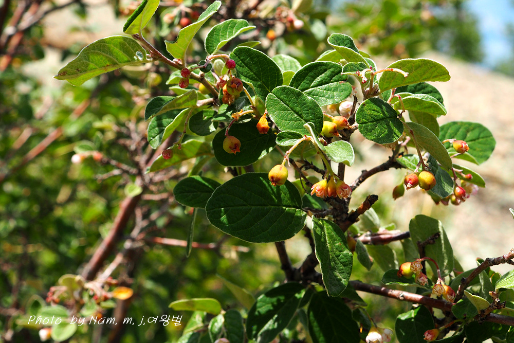몽골식물 도감의 사진으로 학명을 확인하니 Cotoneaster melanocarpus 과 Cotoneaster mongolicus 이 있는데,