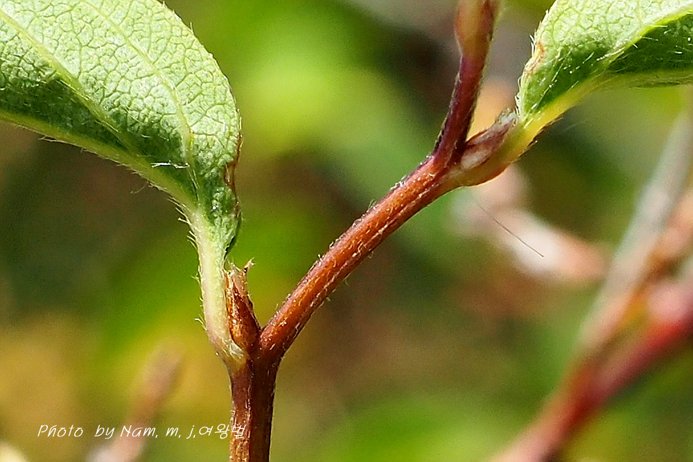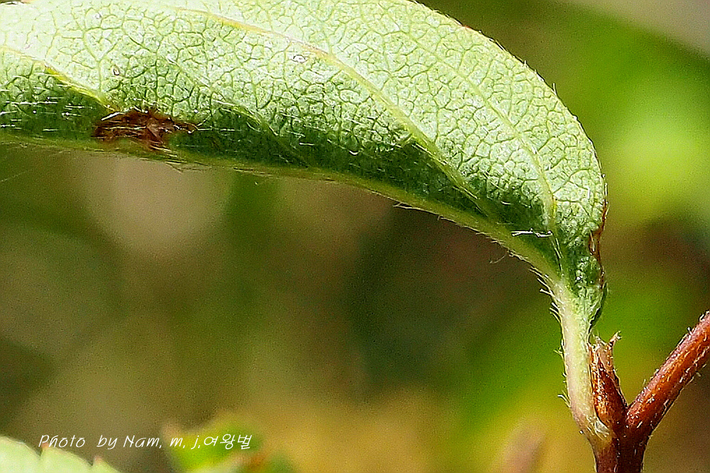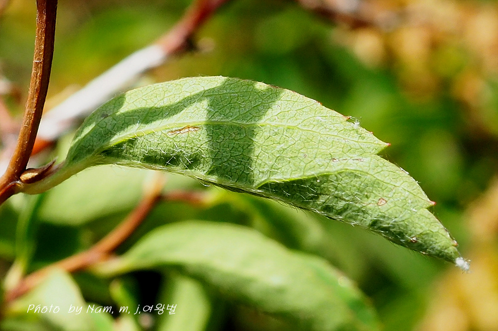 잎맥, 잎자루, 잎 뒷면에 누운털이 있다.