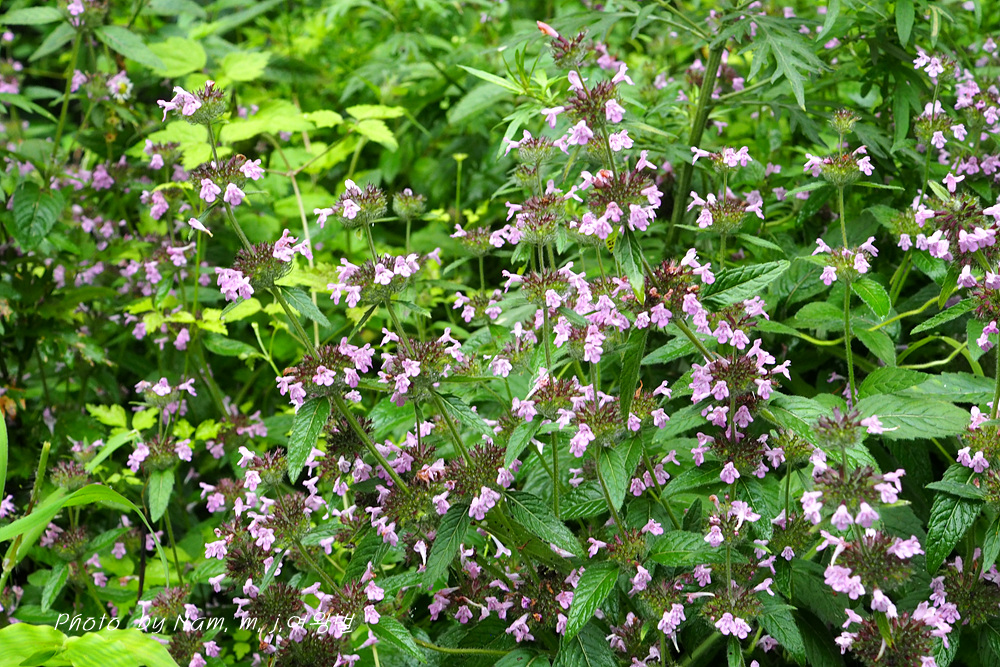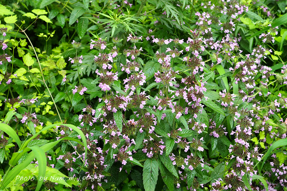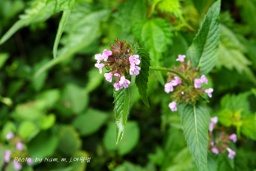 여름 야산에는 풀꽃들이 거의 안 보이는데 구불거리는 내리막길에 층층이꽃이 붉게 웃고 있다.