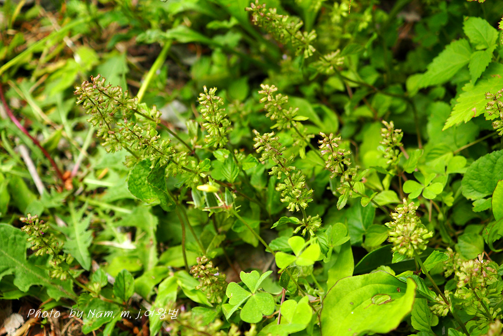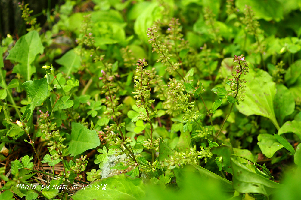 원형에 기까운 작은 잎과 연속적인 꽃차례를 보아하니 애기탑꽃이 아닐까 하고 촬영을 했는데