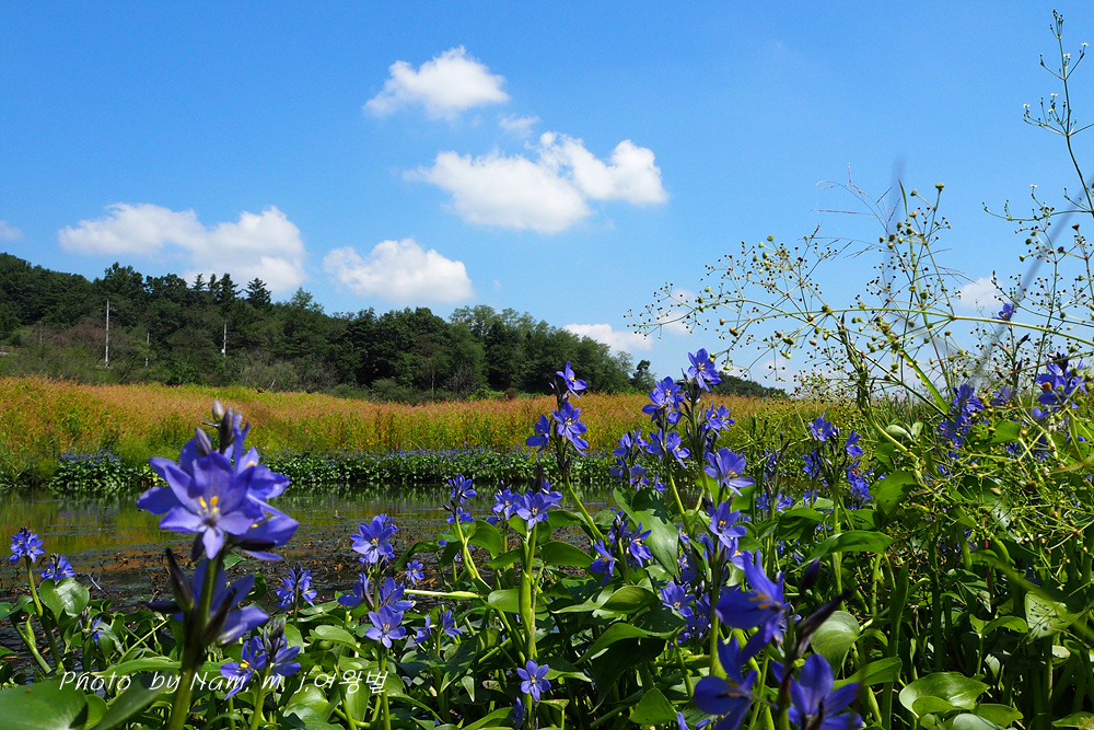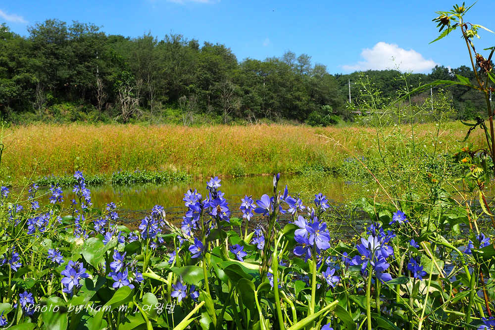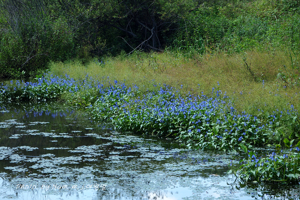 이렇게 물옥잠이 파랗게 흐드러지고 있었다,