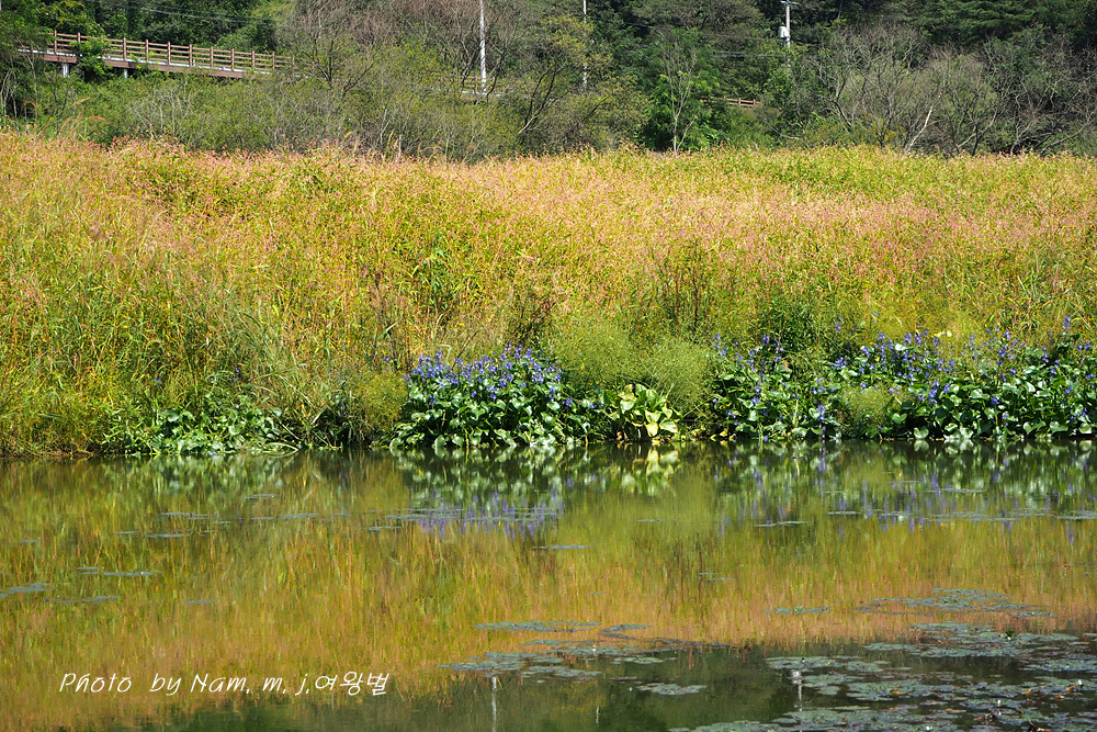 그 이후 수자원 측에서 물을 만수위로 가두어 버려서 내가 즐겨 찾던 수변 꽃밭은 물속에 잠겨 버려 아쉬웠더랬는데