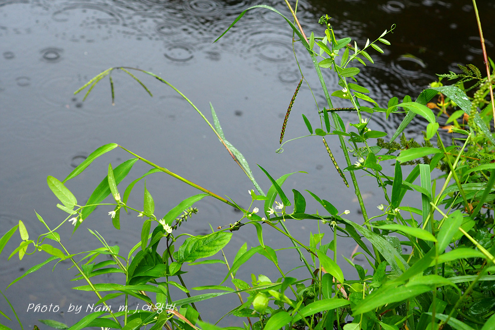 연못에 도착하니 빗줄기가 약하게 투닥거리며 나뭇잎에서 떨어져 내 정수리를 적신다.