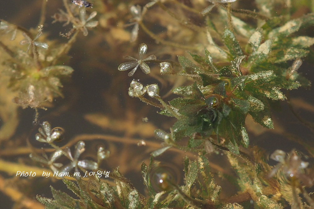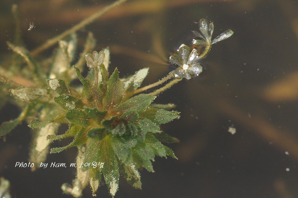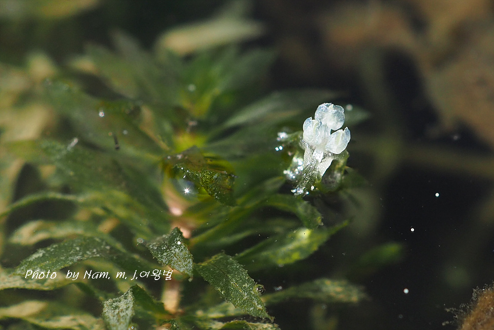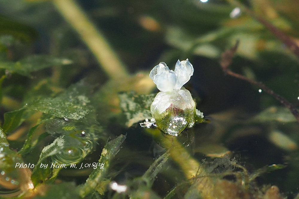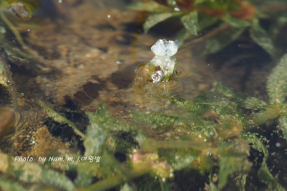 이 녀석은 긴 꽃자루를 가진 암꽃이 잎겨드랑이에서 나와 물 위에 꽃잎을 펼치면