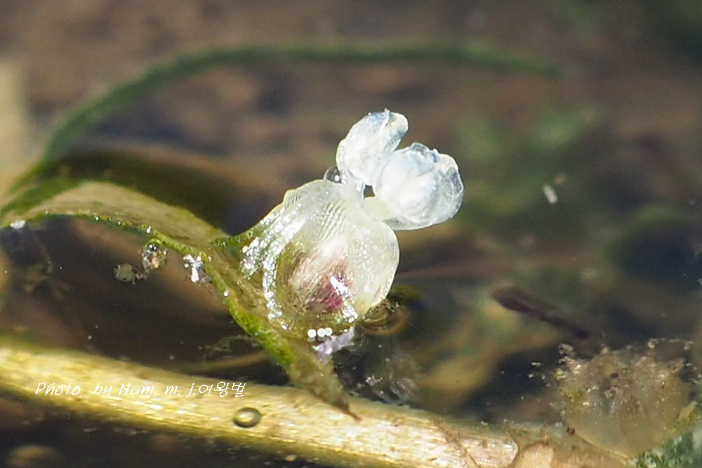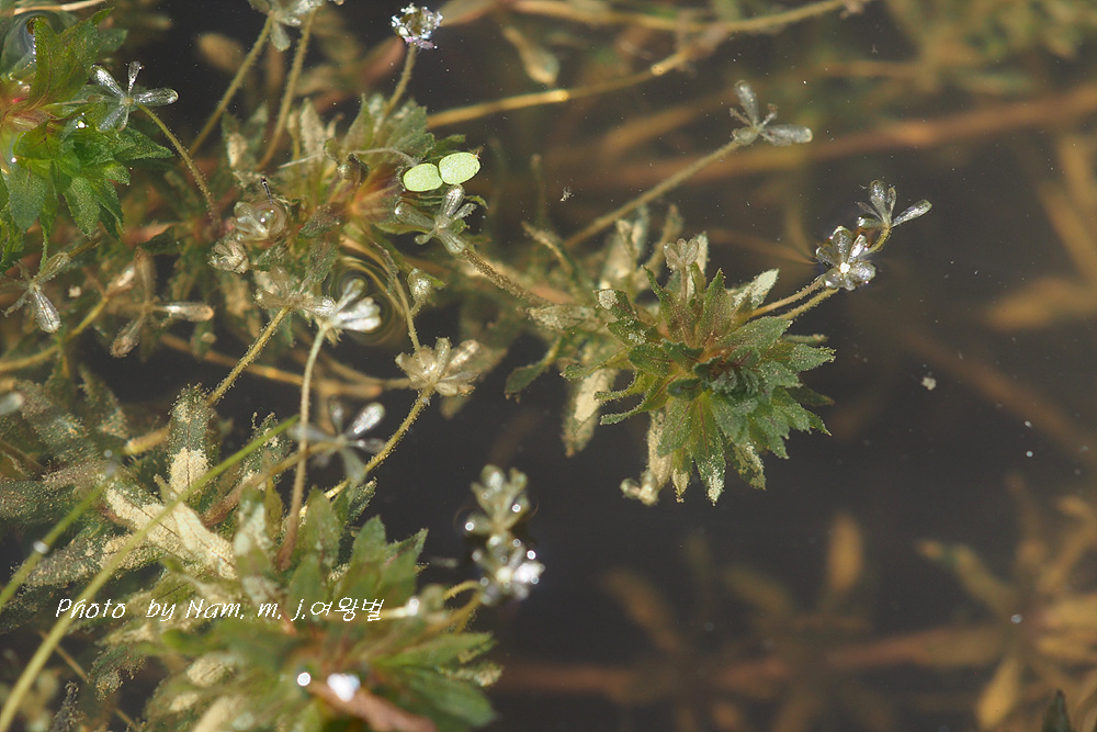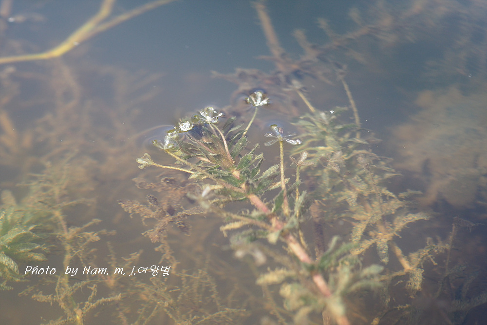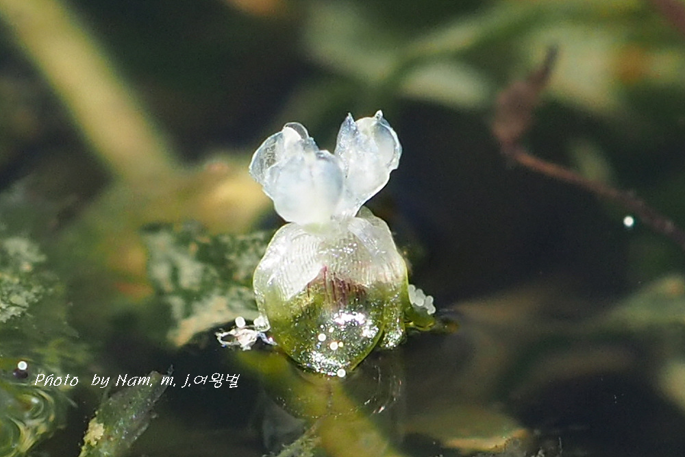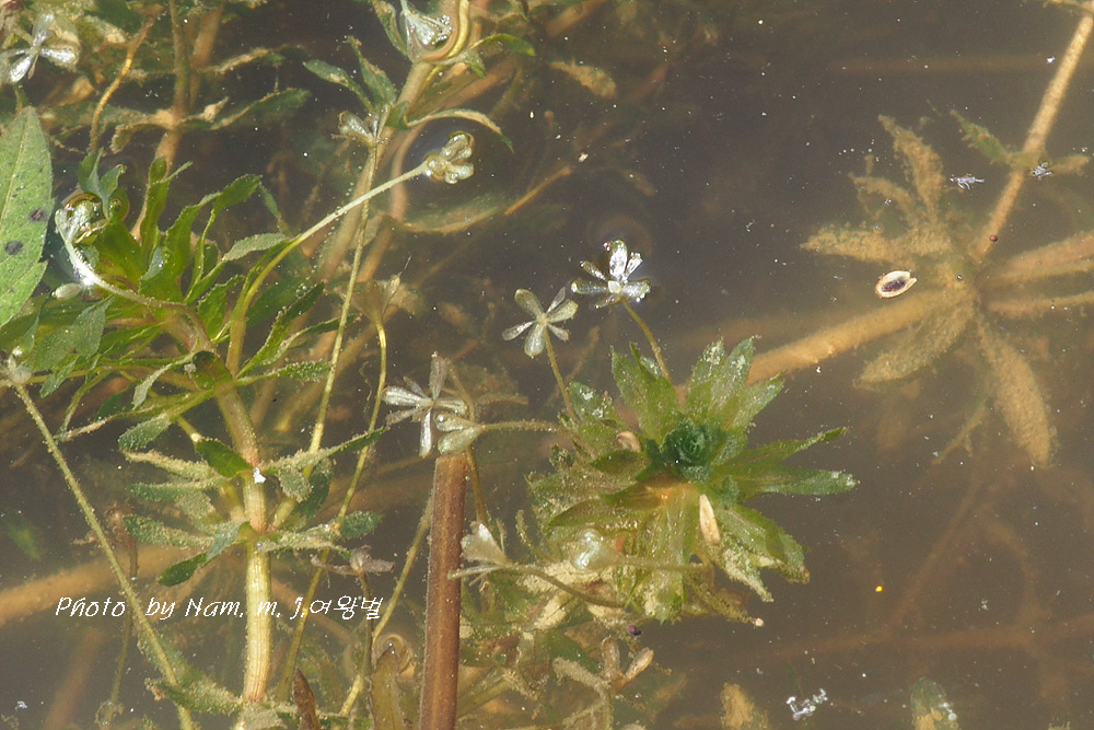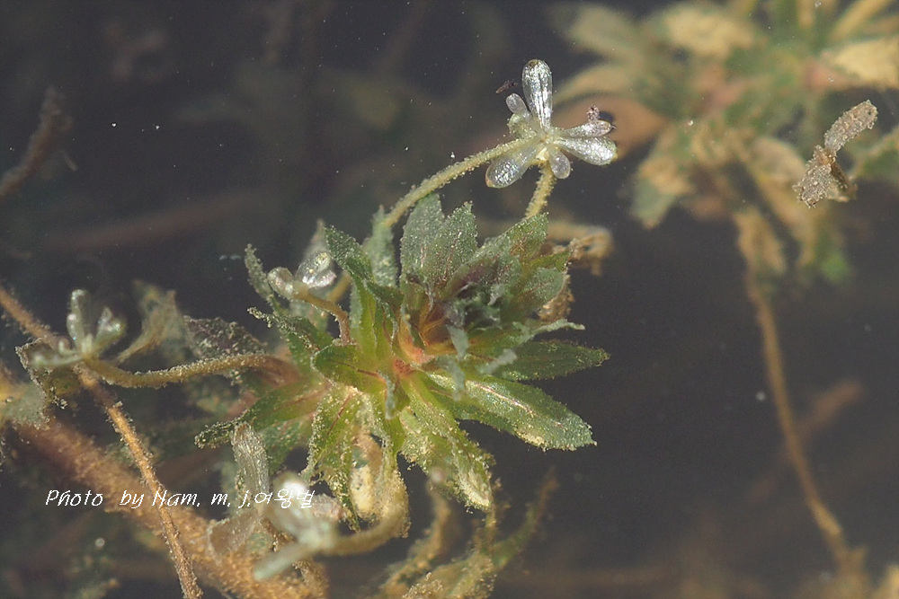 이 녀석은 긴 꽃자루를 가진 암꽃이 잎겨드랑이에서 나와 물 위에 꽃잎을 펼치면