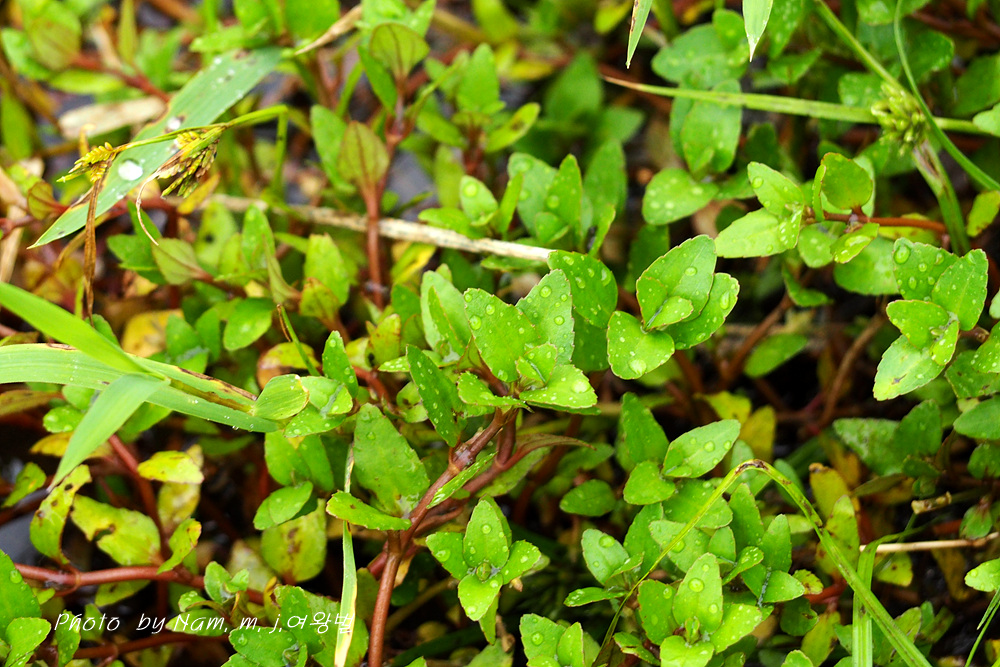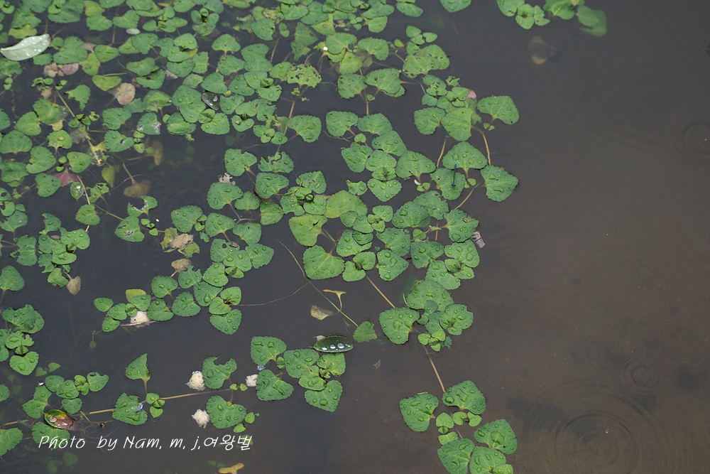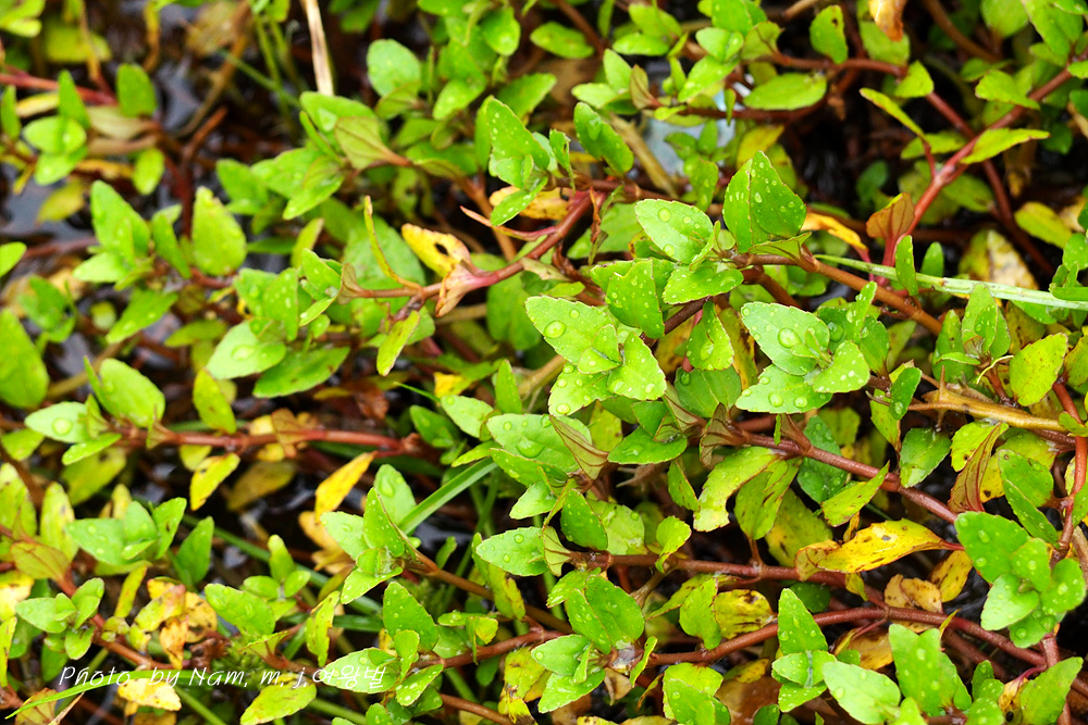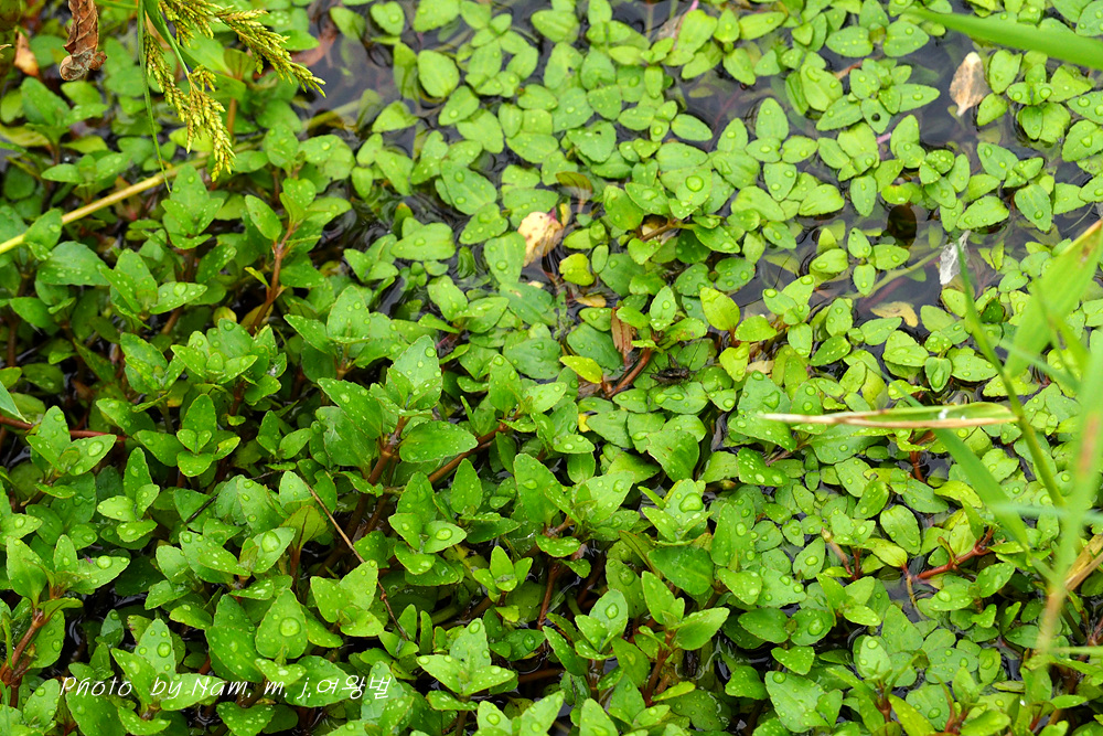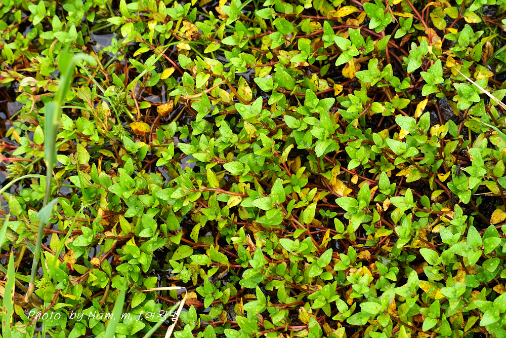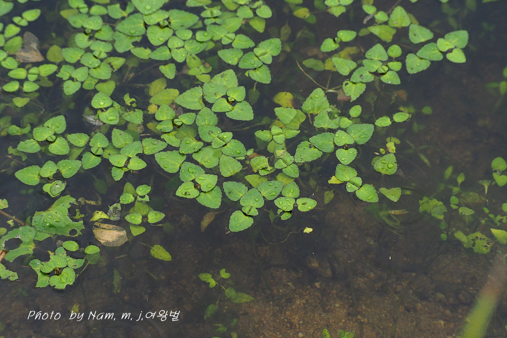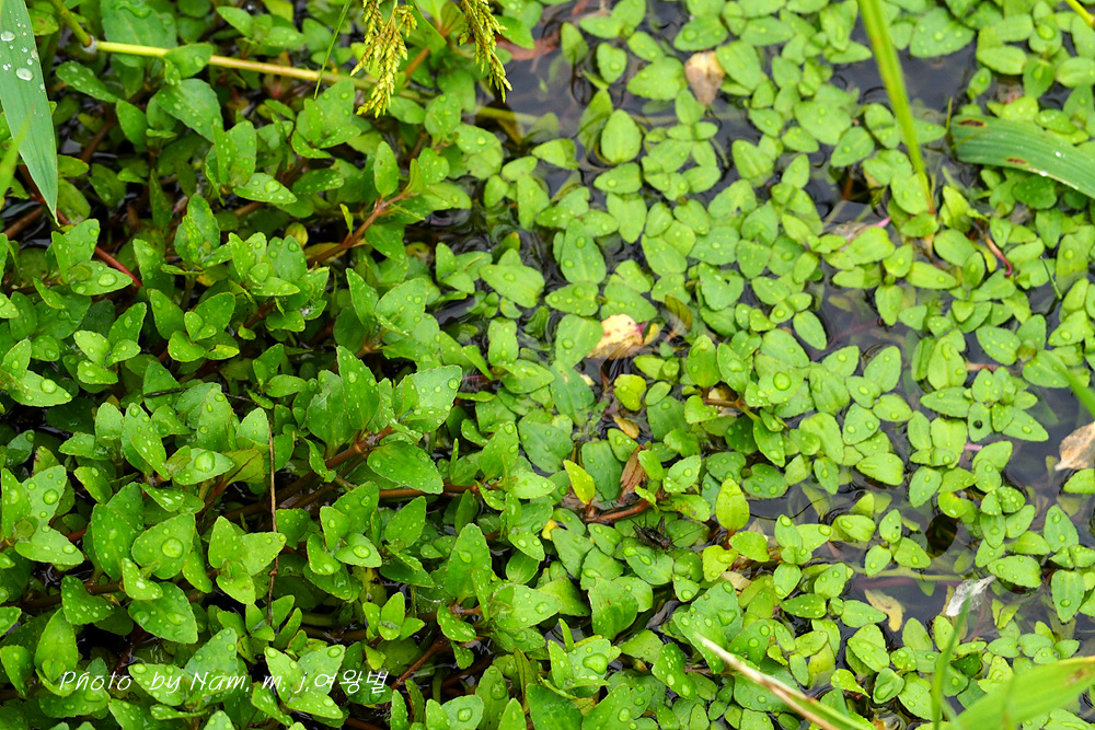 가뭄으로 수위가 낮아지다 보니 물밖에서 자라게 되었는데,수중엽보다 잎이 더 좁고 줄기가 짧다.